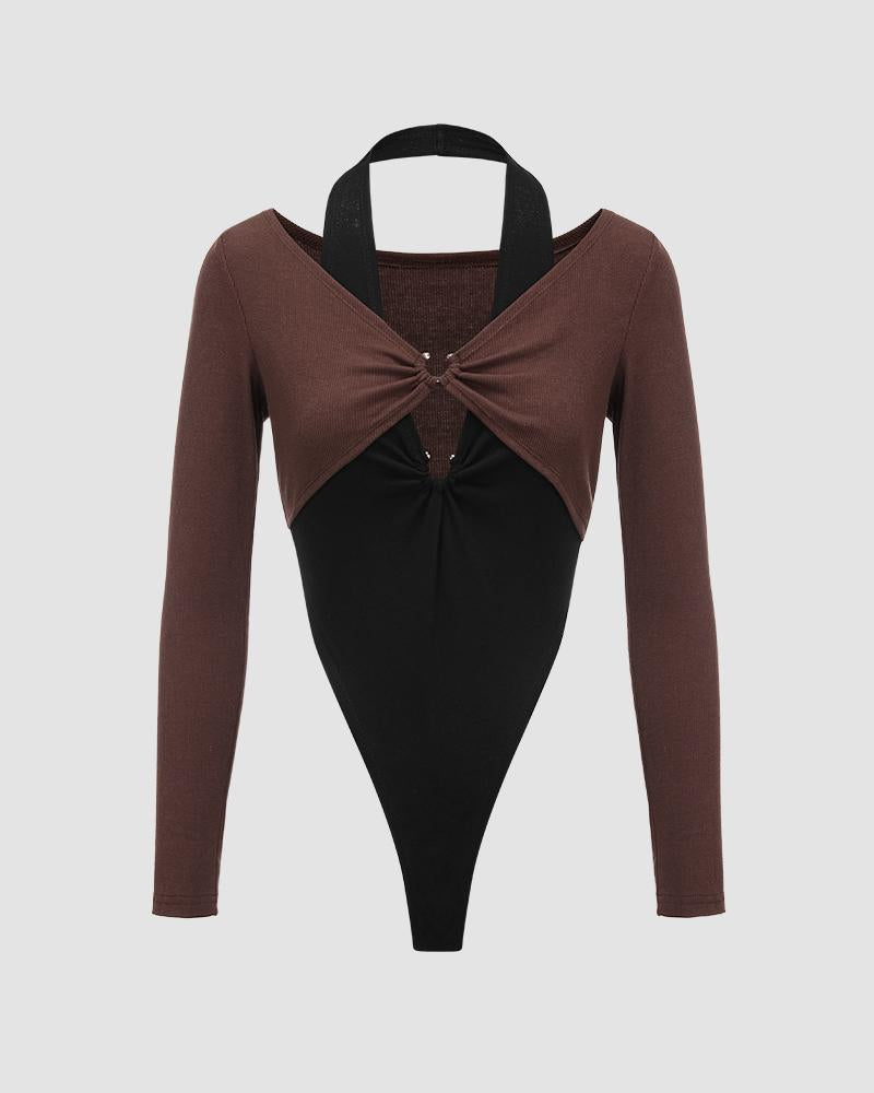 Details: Matching color bodysuit with front ring design