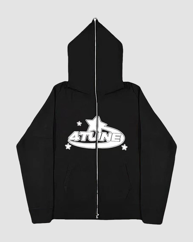 Details: Zip up hoodie with ATUNE print design