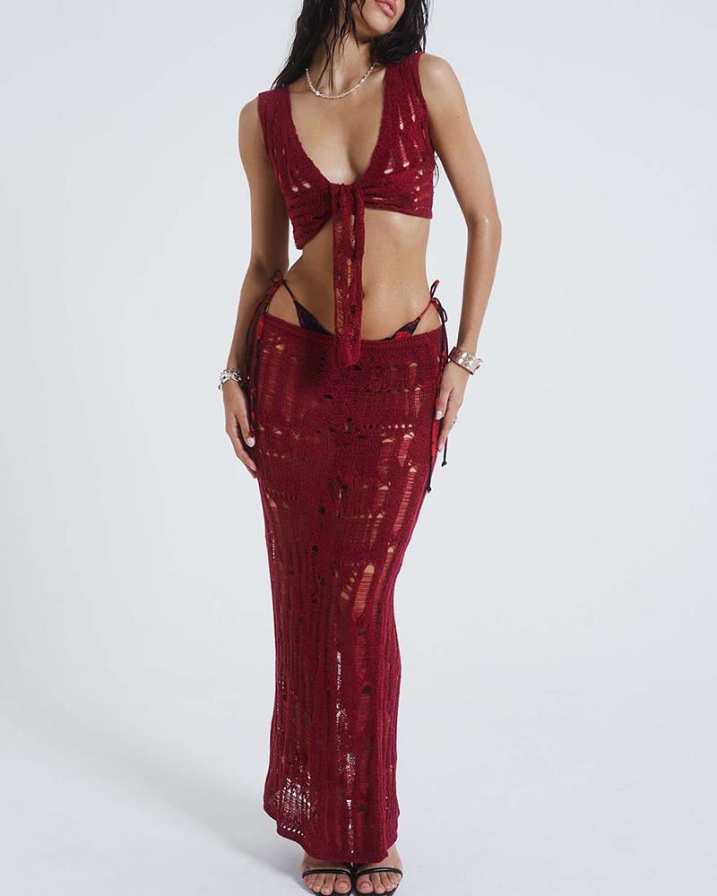 Details: Crochet coord set. coming with V-neck cami top and maxi skirt