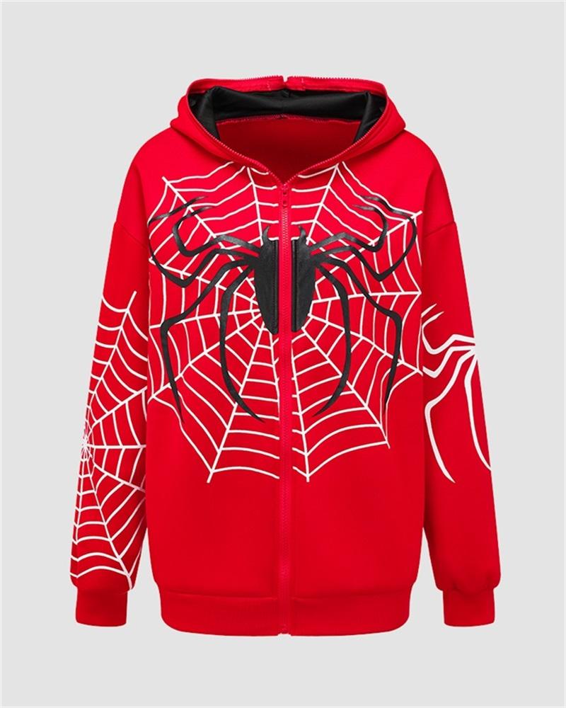 Details: Zip hoodie with spider web design