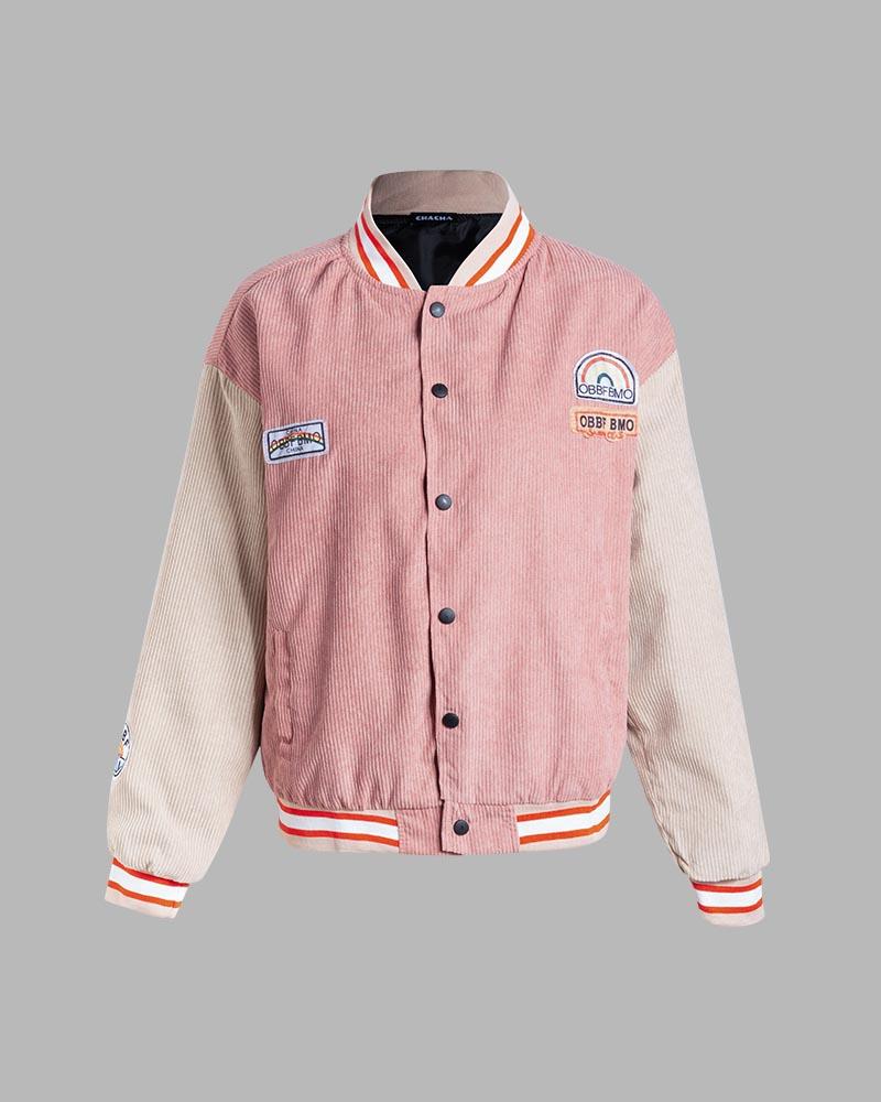 Details: Long-sleeve baseball jacket with corduroy fabric