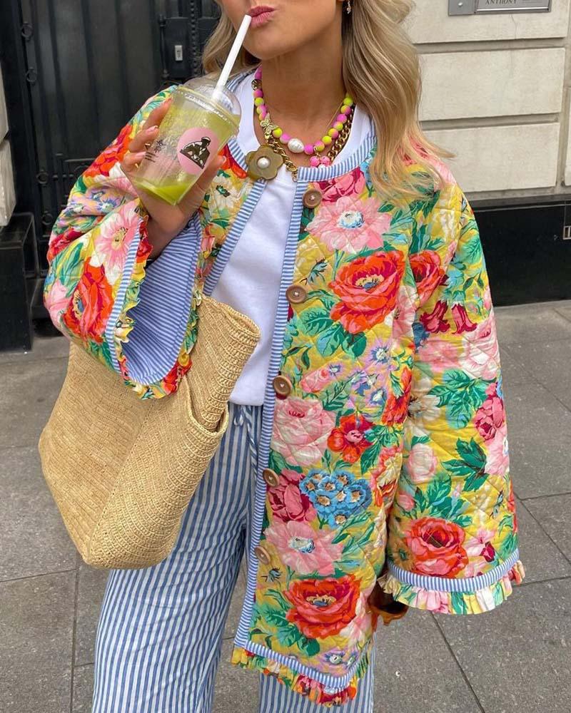 Details: Puffer jacket with floral print design