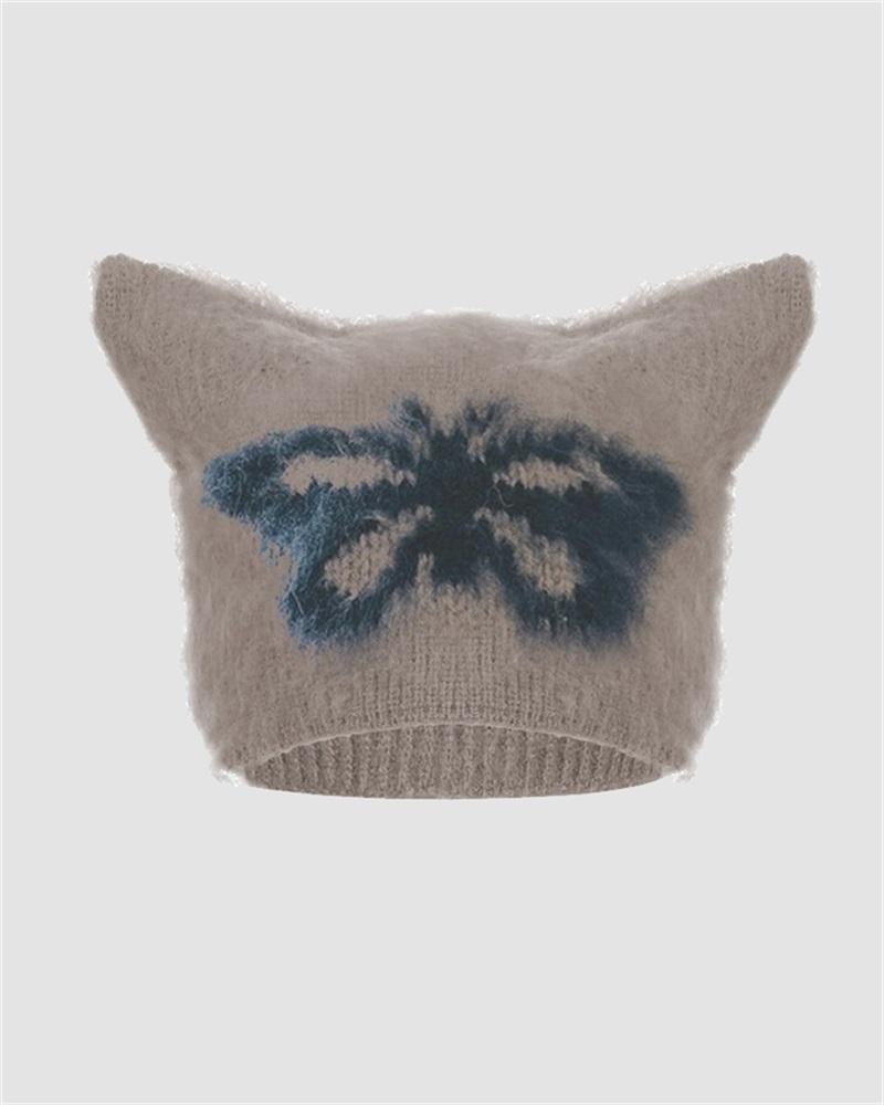 Details: Hat with cat ear design and butterfly details