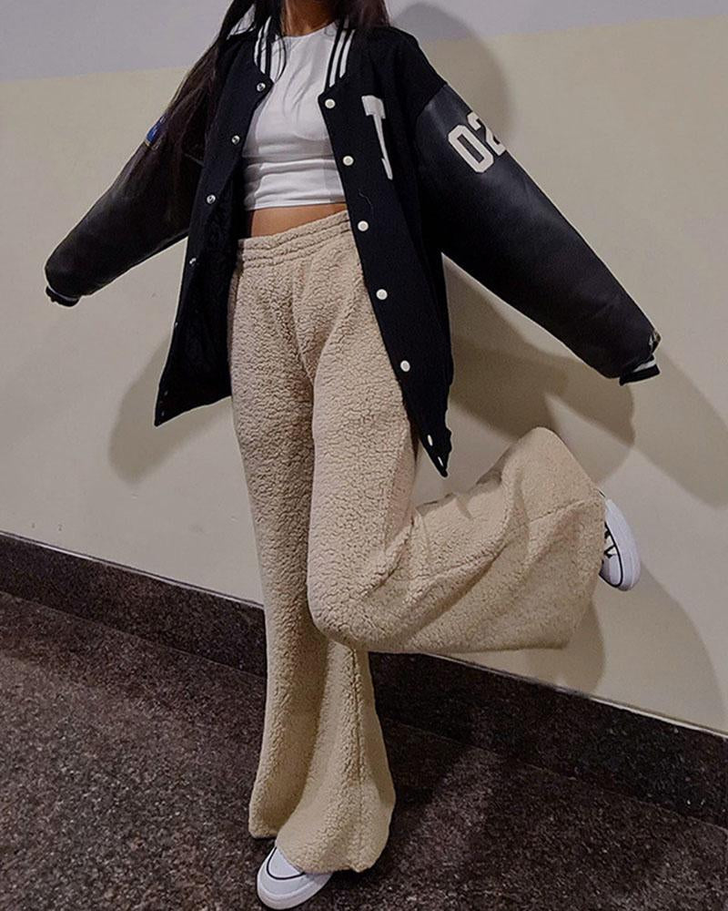 Details: Woolen pants with oversized designBottom Length: LongMaterials:95% Polyester + 5% Spandex