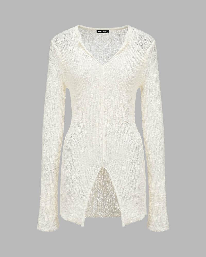 Details: Long-sleeve ribbed top with front split design