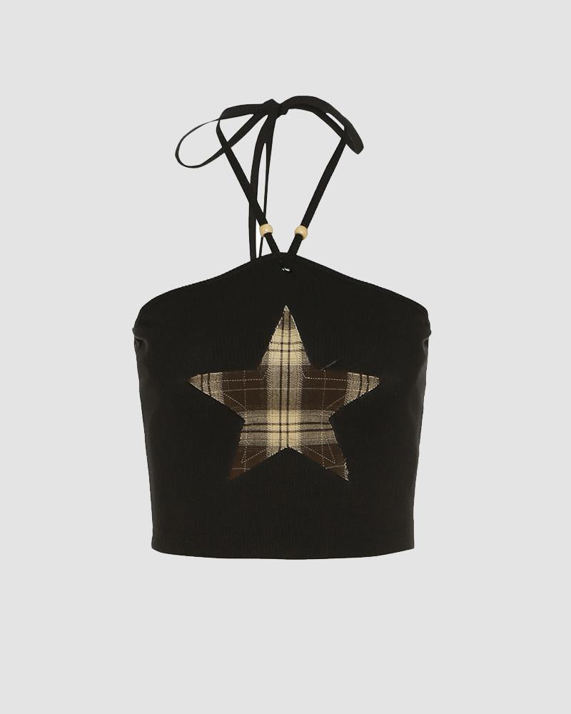 Checkered Star Halter Crop Top