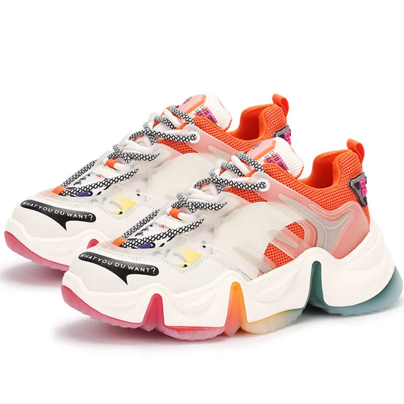 The Color Splash Chunky Sneakers make a bold statement with their vibrant hues and oversized silhouette. blending comfort and style effortlessly for a standout addition to your streetwear collection.