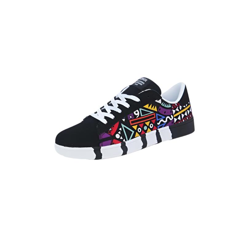 Vibrant style and optimal comfort-- those are the hallmarks of these Colorful Graffiti Skateboard Shoes. Boasting a fun geometric pattern. lace-up closure. and a canvas upper. these shoes will have you feeling ready to rock every step of your journey. Plus. the rubber insole ensures you stay comfy all the while. Go ahead and take your standard size!