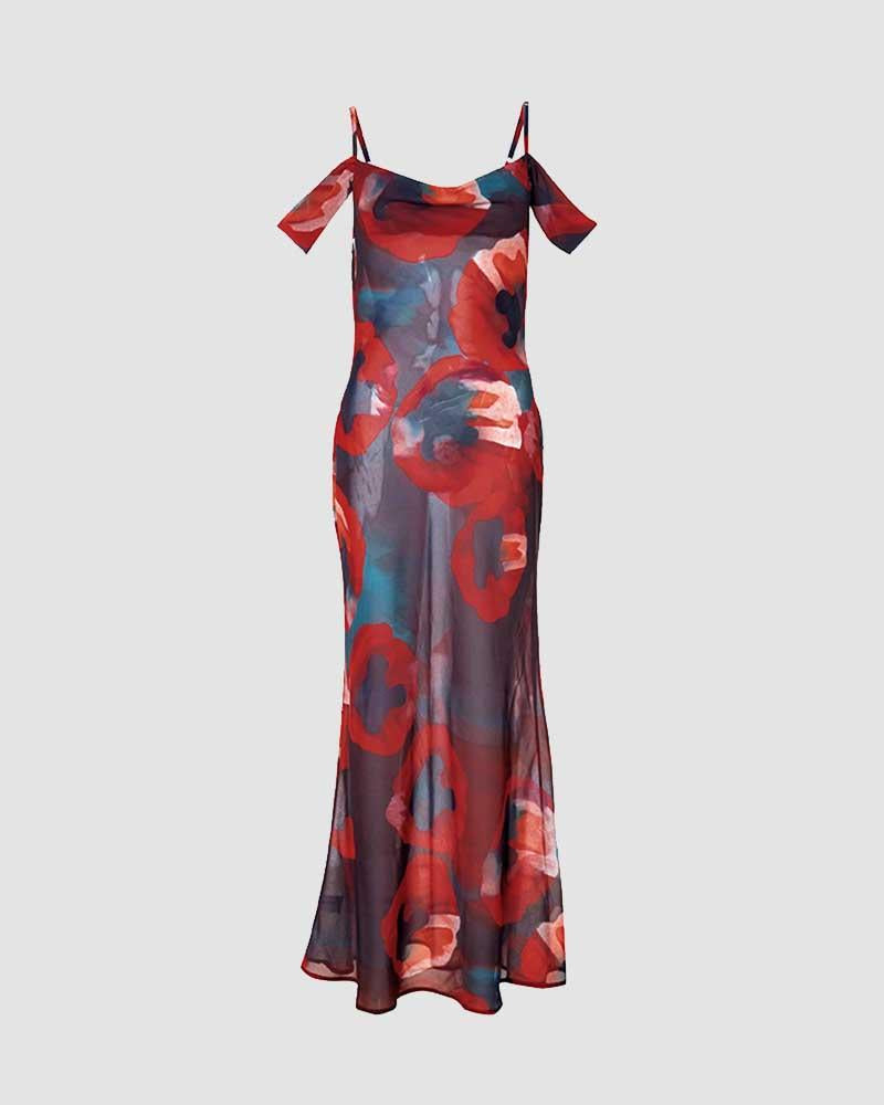 Details: Maxi dress with lipsticks graphical print