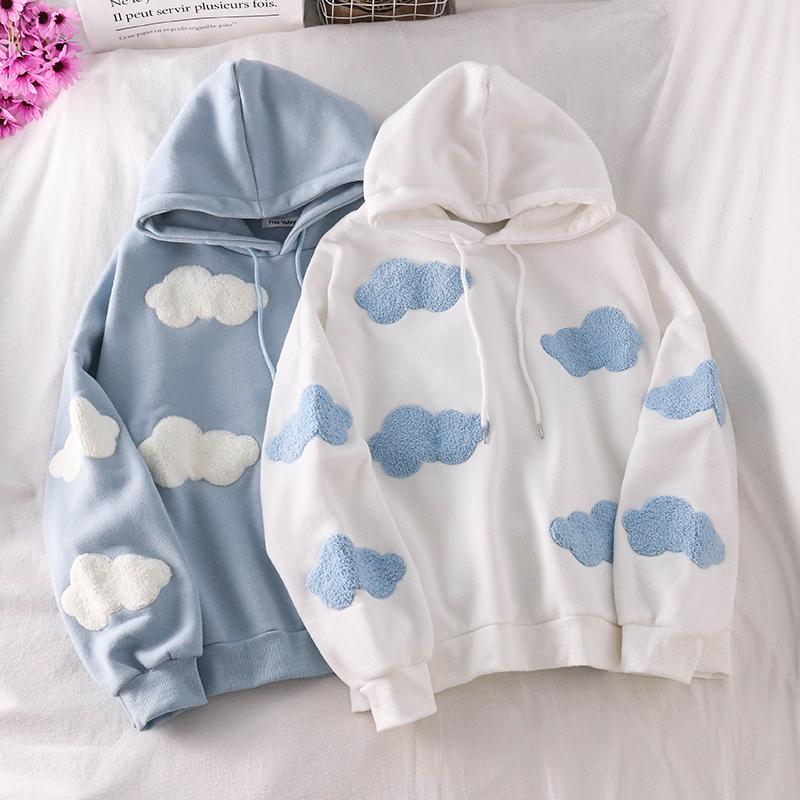 Features: Women cute cloud pattern hoodie. long sleeve shirt. drawstring design.casual style pullover hoodie for women. pullover hoodie. loose daily apparel.
