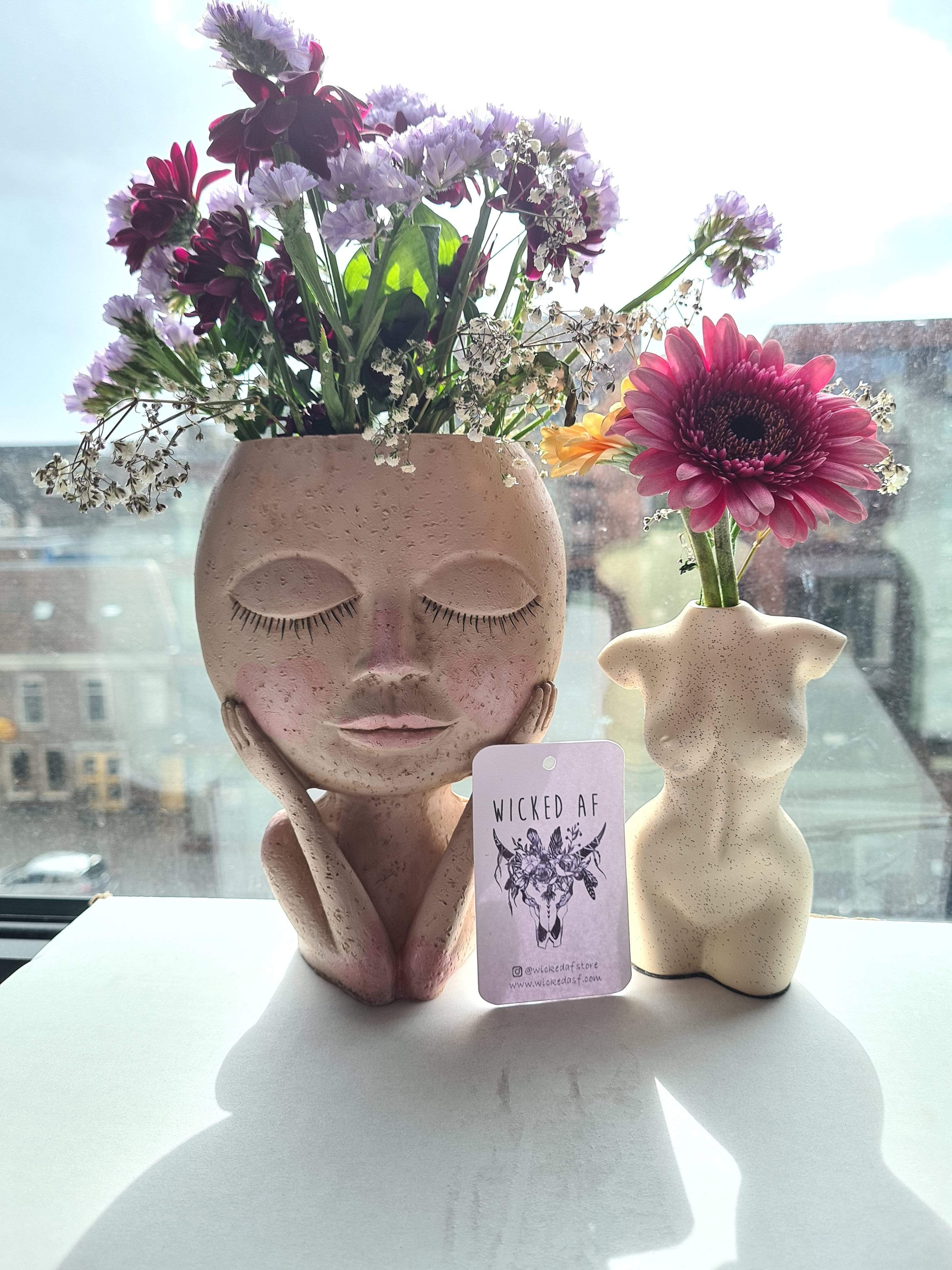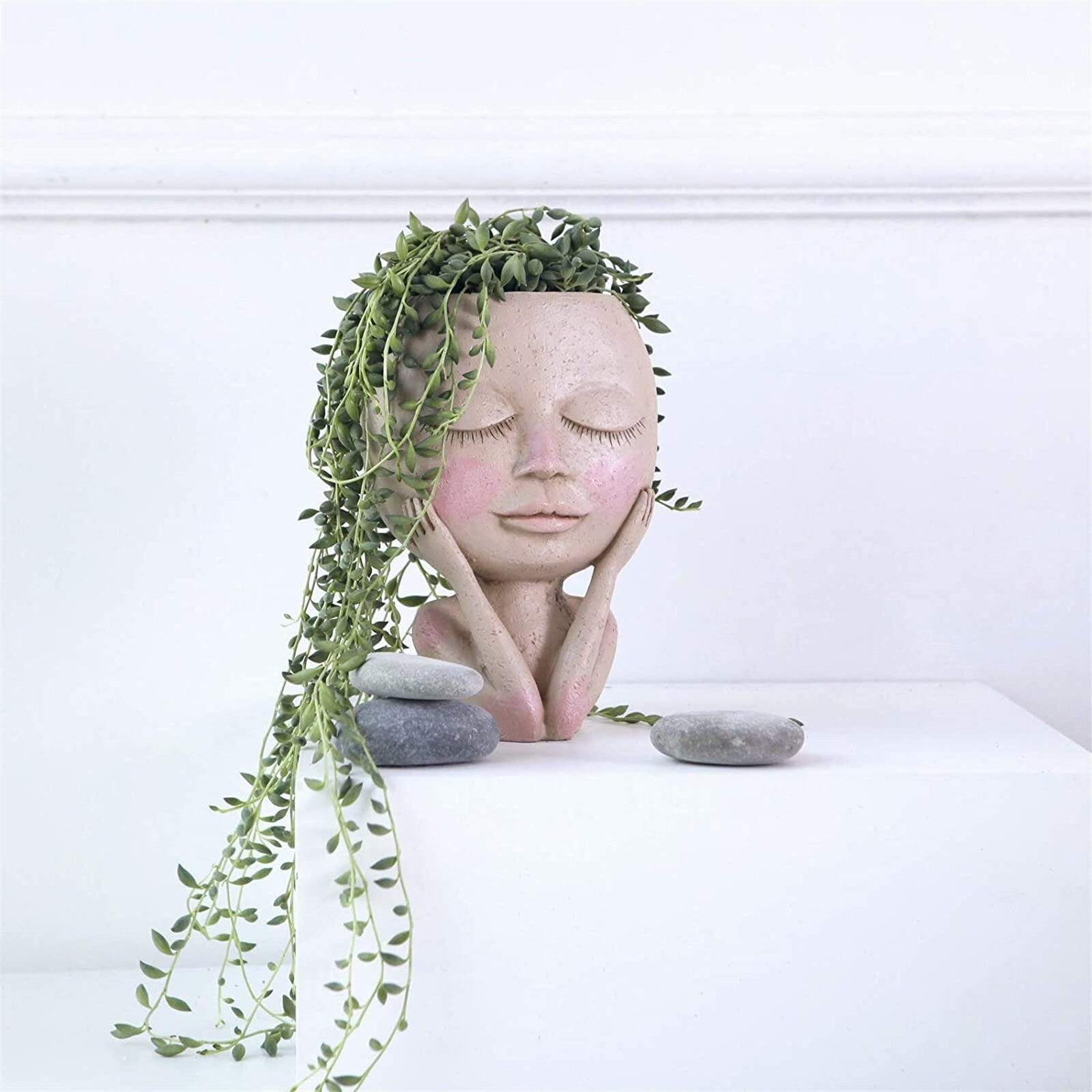 Introducing the Cute Lady Planter - the perfect addition to any modern. minimalist home. This unique face plant pot is a versatile canvas for your creativity. allowing you to showcase your favorite plants in style. With its sleek. Scandinavian-inspired design. it's sure to be a conversation starter. Whether you choose to use it as a face flower pot or a planter in the shape of a head. this sculpture will add a touch of whimsy to any space. So why wait? Add the Cute Lady Planter to your collection today and let your creativity blossom!Either of these two planters will brighten up any room and also are a wonderful conversation starter!