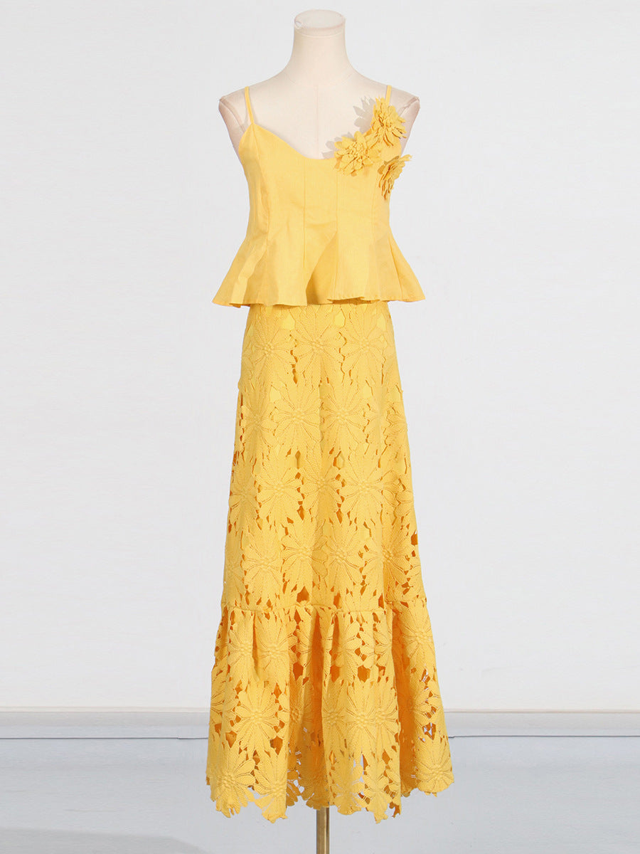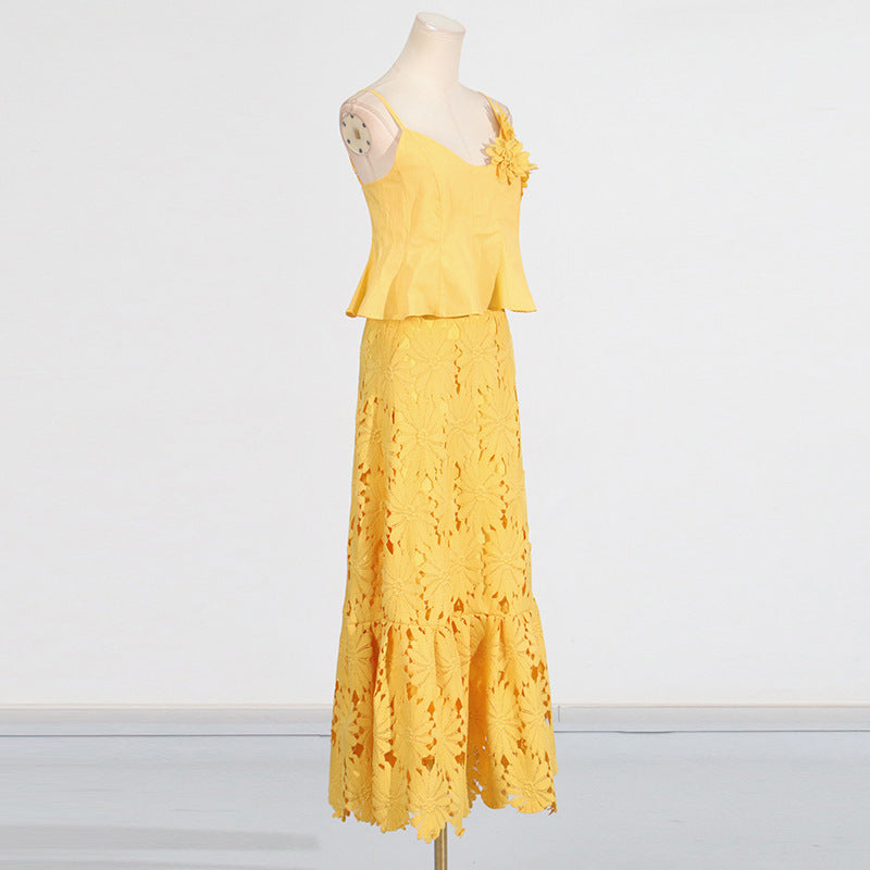 The Daisy Belle Lace Maxi Set is made for sunlit daydreams and barefoot garden moments. Featuring delicate daisy lace embroidery and a breezy peplum top. it's the kind of set that feels effortlessly romantic. Style it with gold hoops and sandals for the ultimate soft summer look.