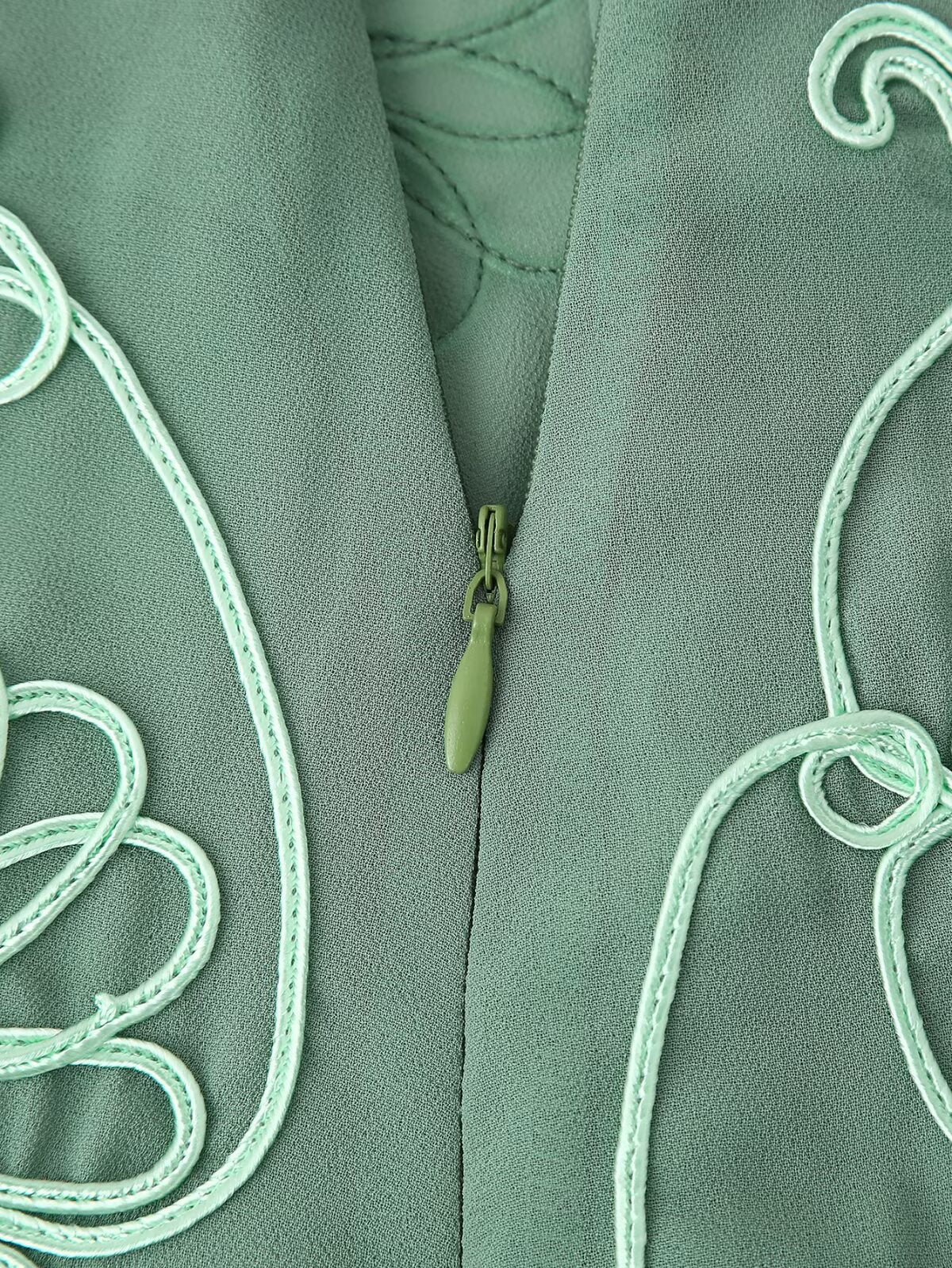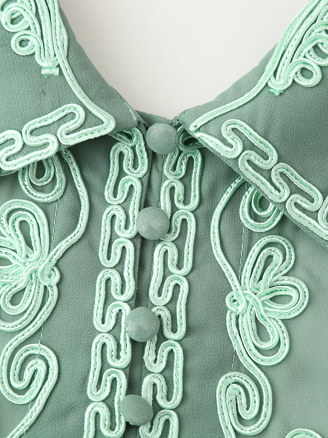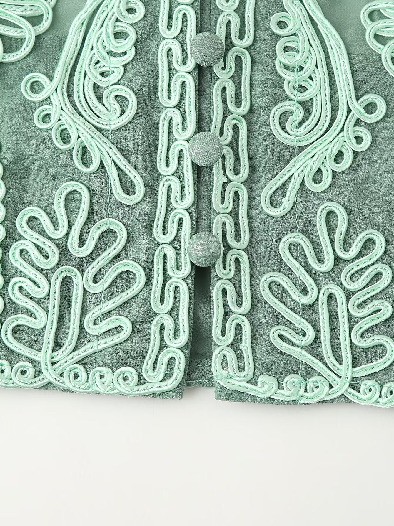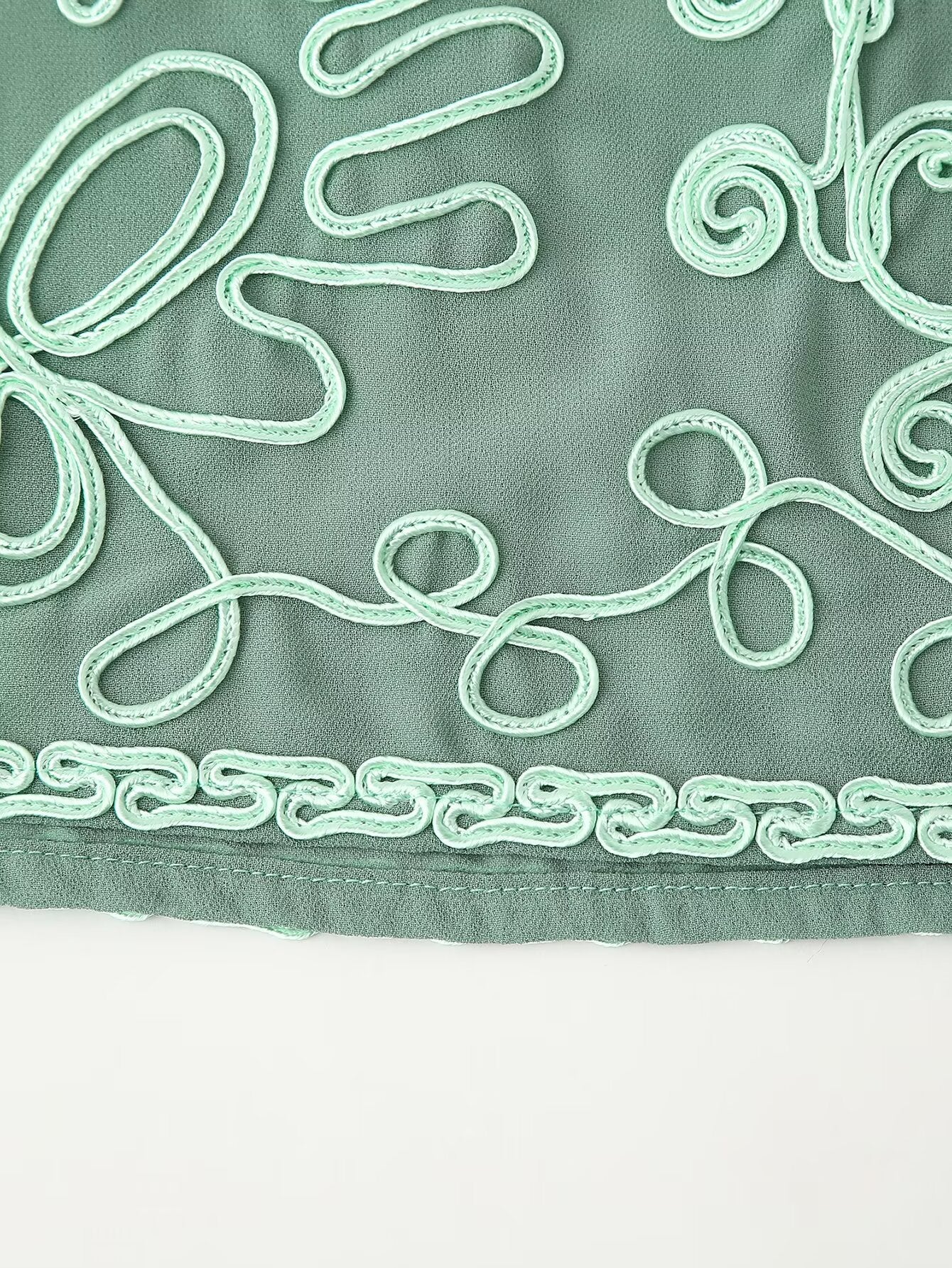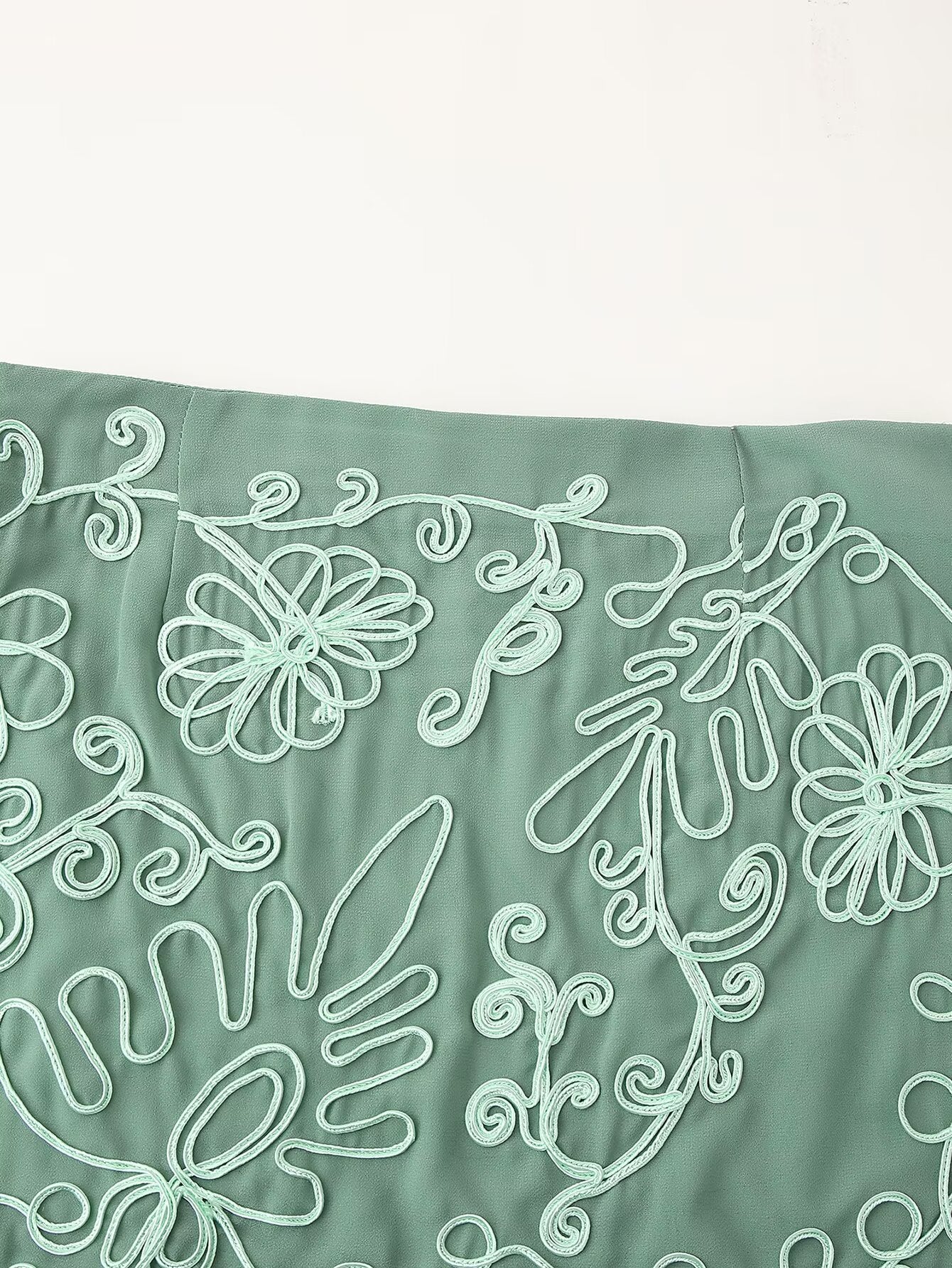 Flirty and fresh. the Delilah Garden Matching Set brings fairycore vibes to your closet with embroidered floral details and the dreamiest sage green hue. Featuring a halter crop top and a matching mini skirt. this duo is perfect for rooftop hangs or twirling barefoot at golden hour. Lightweight. sheer. and effortlessly bold—just like your weekend plans.