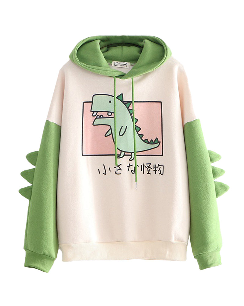 Details: Long-sleeve graphical hoodie with dinosaur design