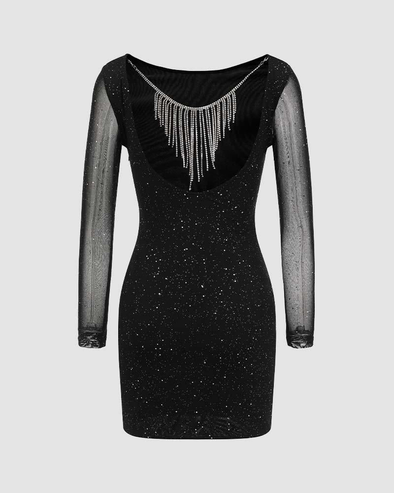 Details: Long-sleeve bodycon dress with mesh sleeves