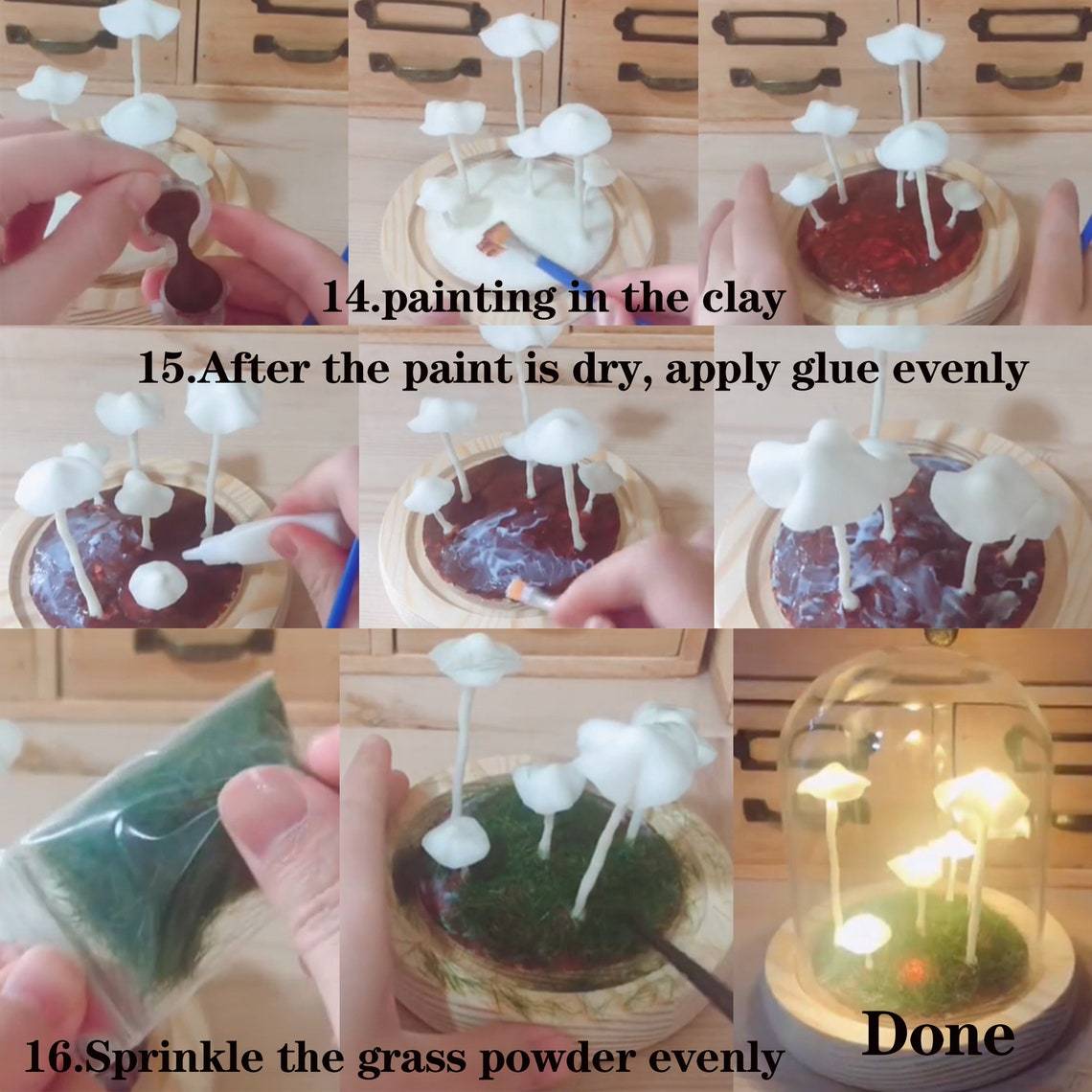 Step 7: Once the clay is completely dry. cover the lamp with the glass cover to complete the mushroom lamp.