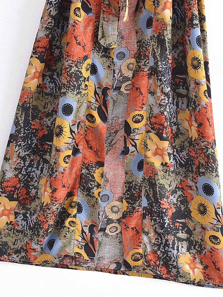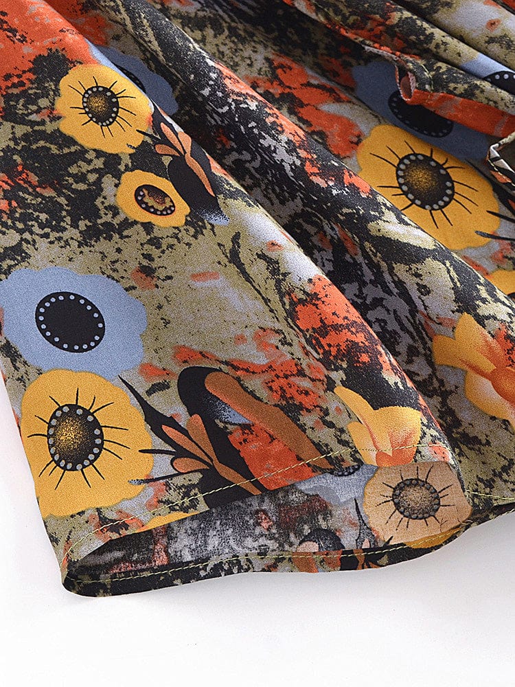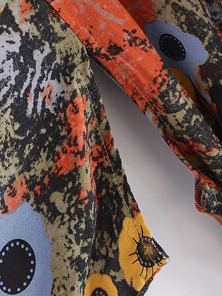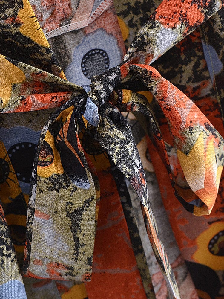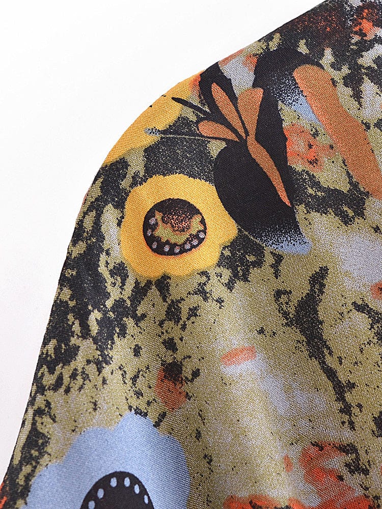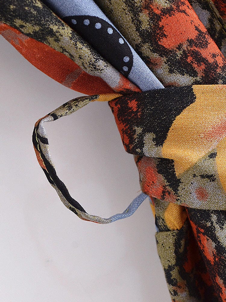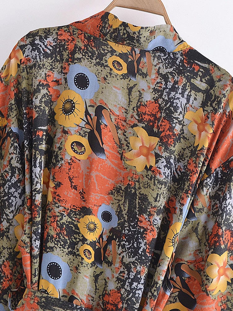 This airy kimono is made of cotton and rayon fabric and has a bohemian-inspired floral motif. as well as giant kimono sleeves and a removable tie.