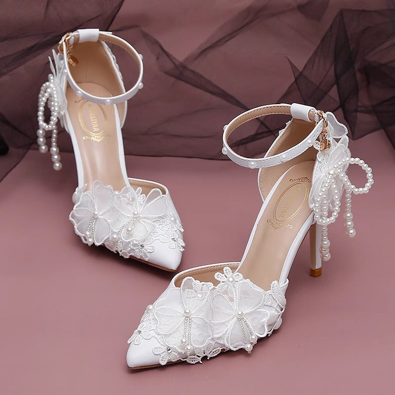 Embellishment: Butterfly. Ankle Strap. Flower. Lace. Pearl