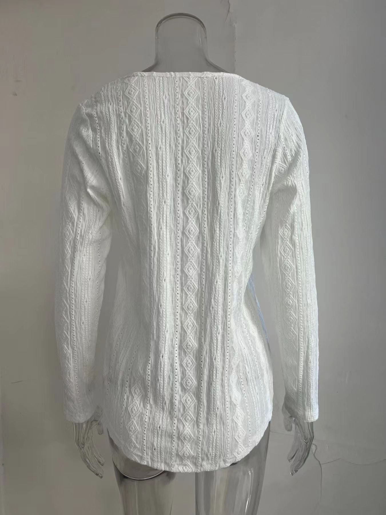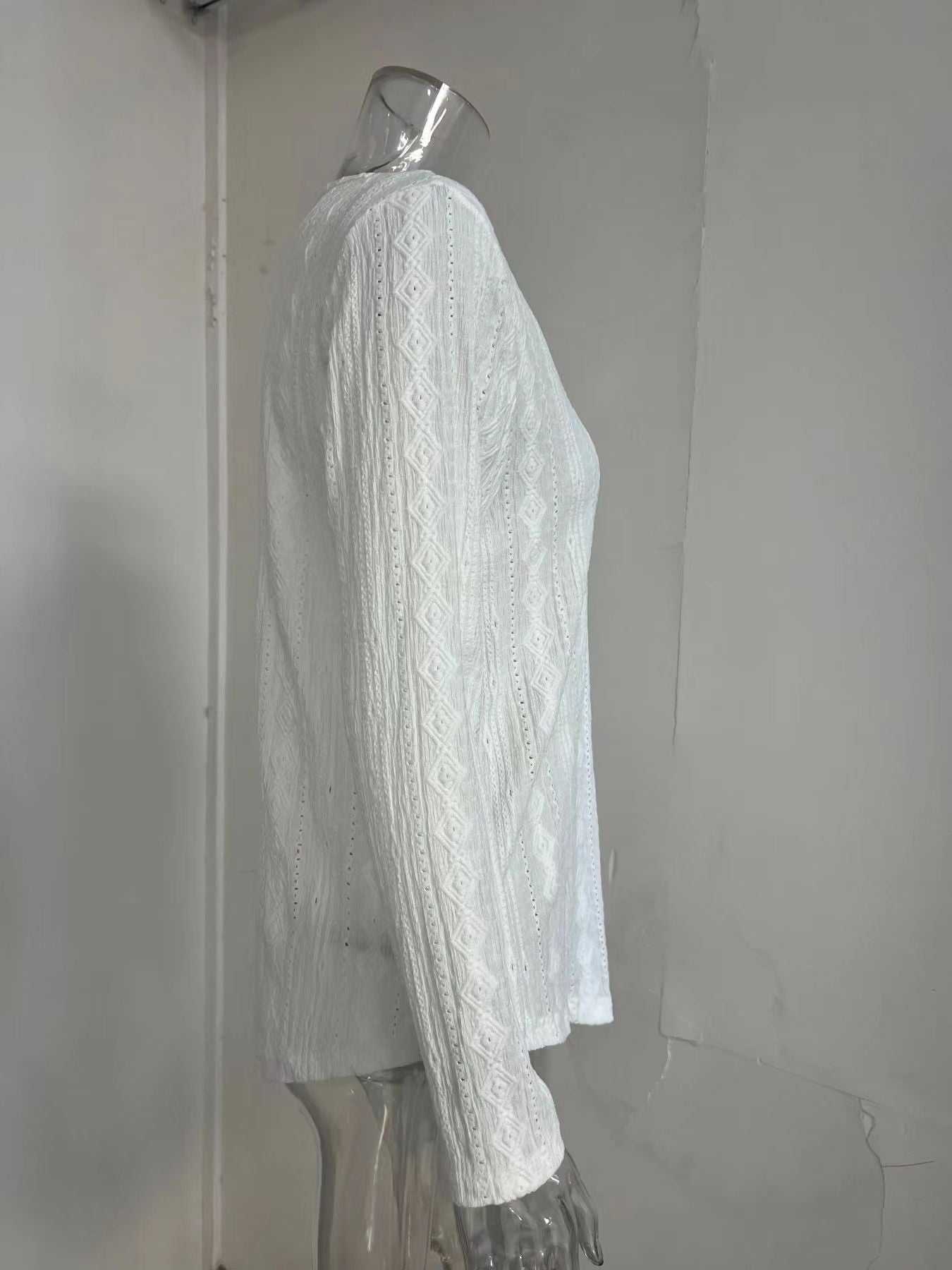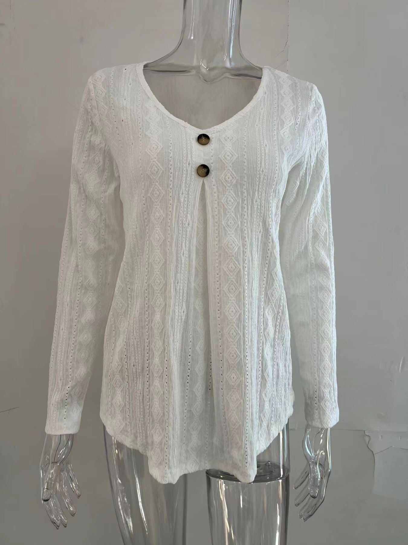 Breezy and romantic. the Eloise Eyelet Shirt Top is your go-to for effortless boho vibes. Featuring delicate eyelet detailing and a soft V-neckline accented with metal buttons. this lightweight piece pairs perfectly with distressed denim or a flowy maxi skirt. Dress it up or down for an effortlessly chic look.