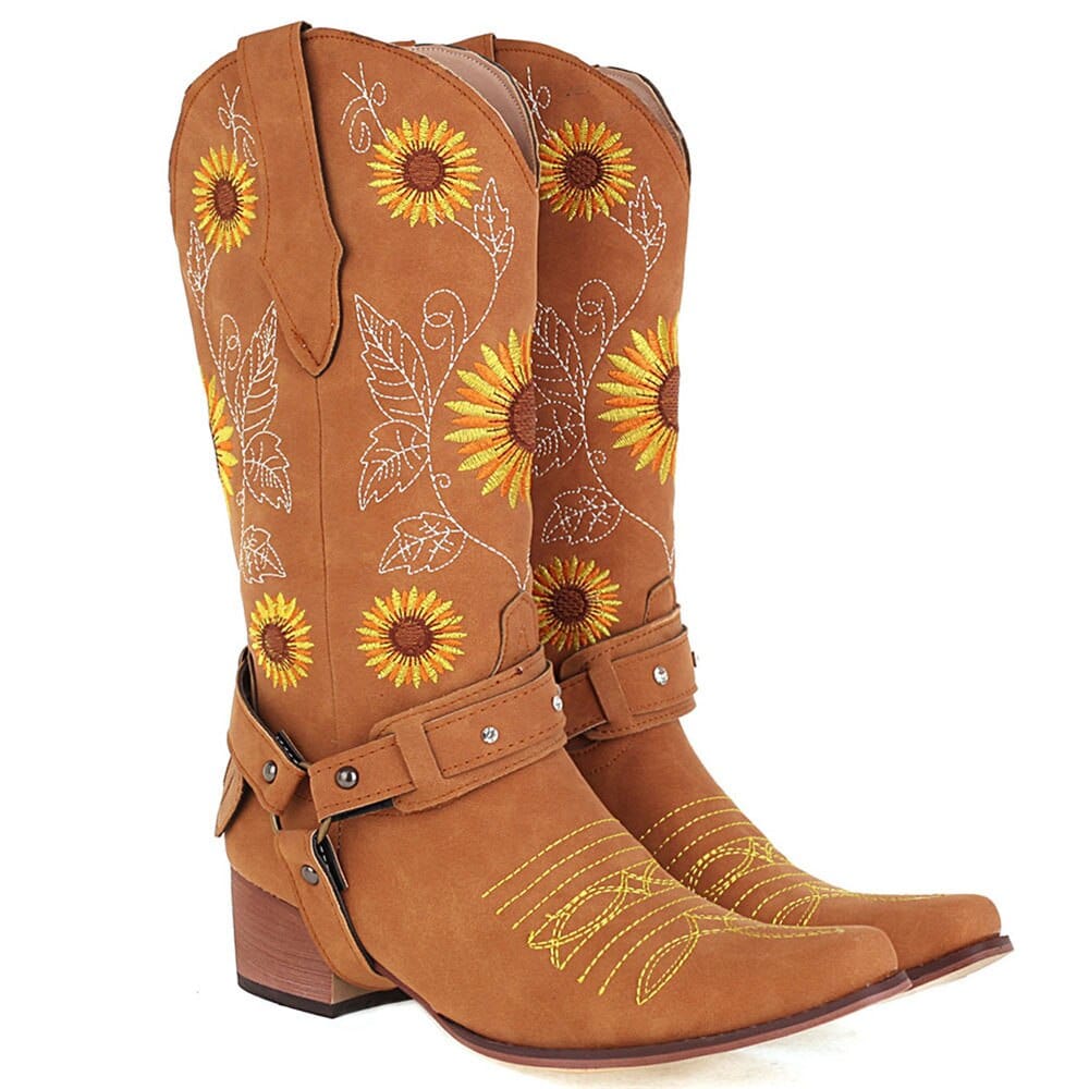 Looking for something a little different in your footwear? Check out these Embroidered Sunflowers Western Boots. With their unique design. they're sure to turn heads wherever you go. The intricate embroidery is eye-catching. and the colorful sunflowers add a touch of whimsy. So whether you're hitting the town or just kicking back at the ranch. these Sunflower Garden Embroidered Western Boots are sure to be a hit.