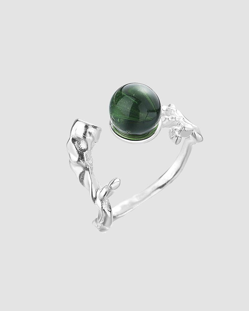 Details: Silver ring with adjustable size. with emerald gen on top
