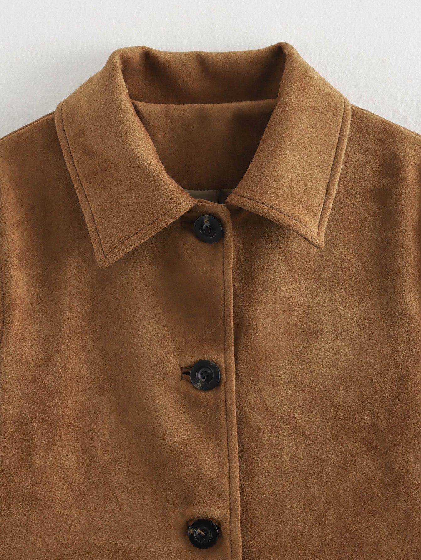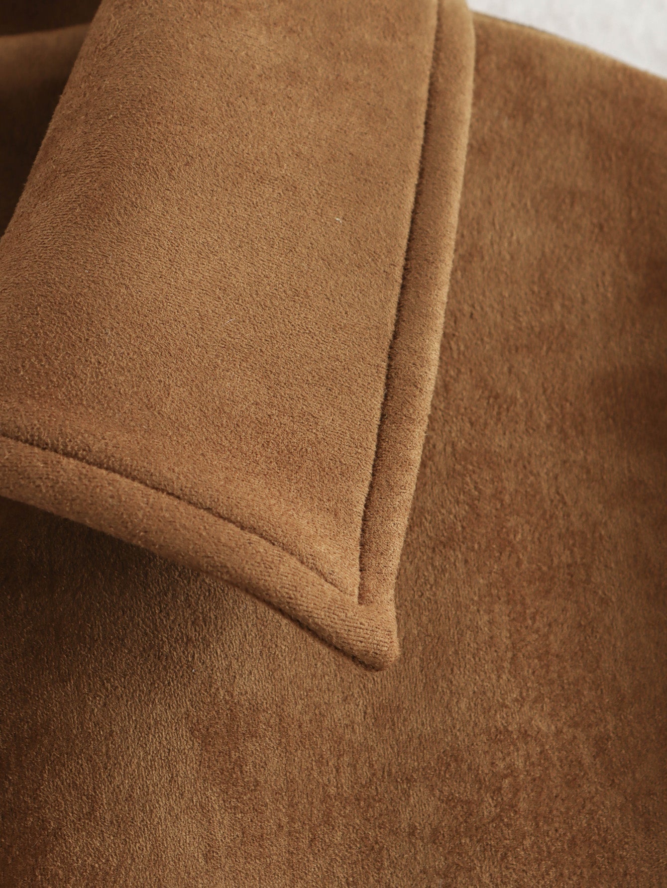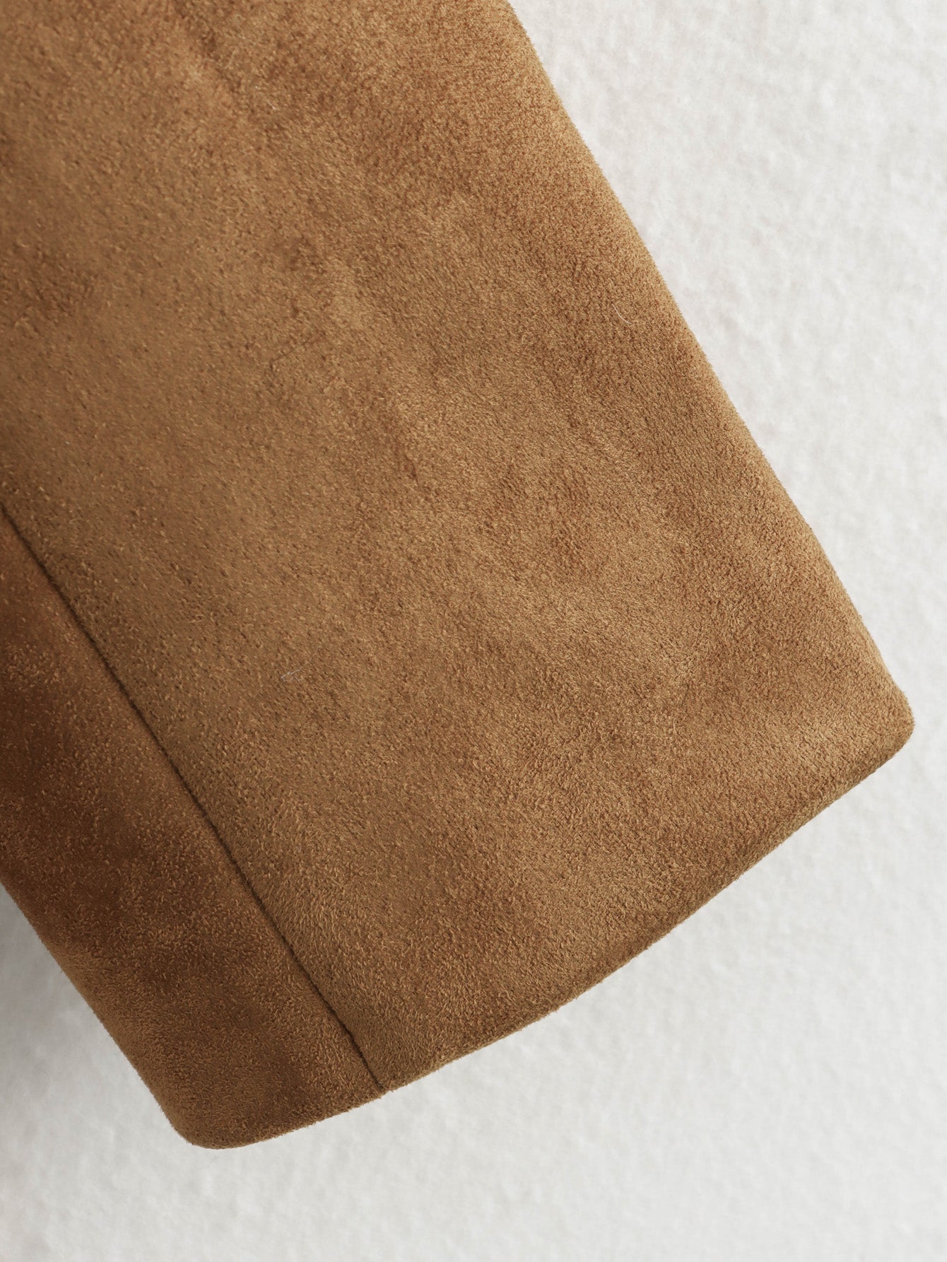 The Emery Suede Pocket Jacket is your go-to layer for effortless cool. Made from soft faux suede. it features oversized patch pockets and a clean button-up front that nails minimal-chic vibes. Perfect for layering over anything from flowy dresses to laid-back denim.