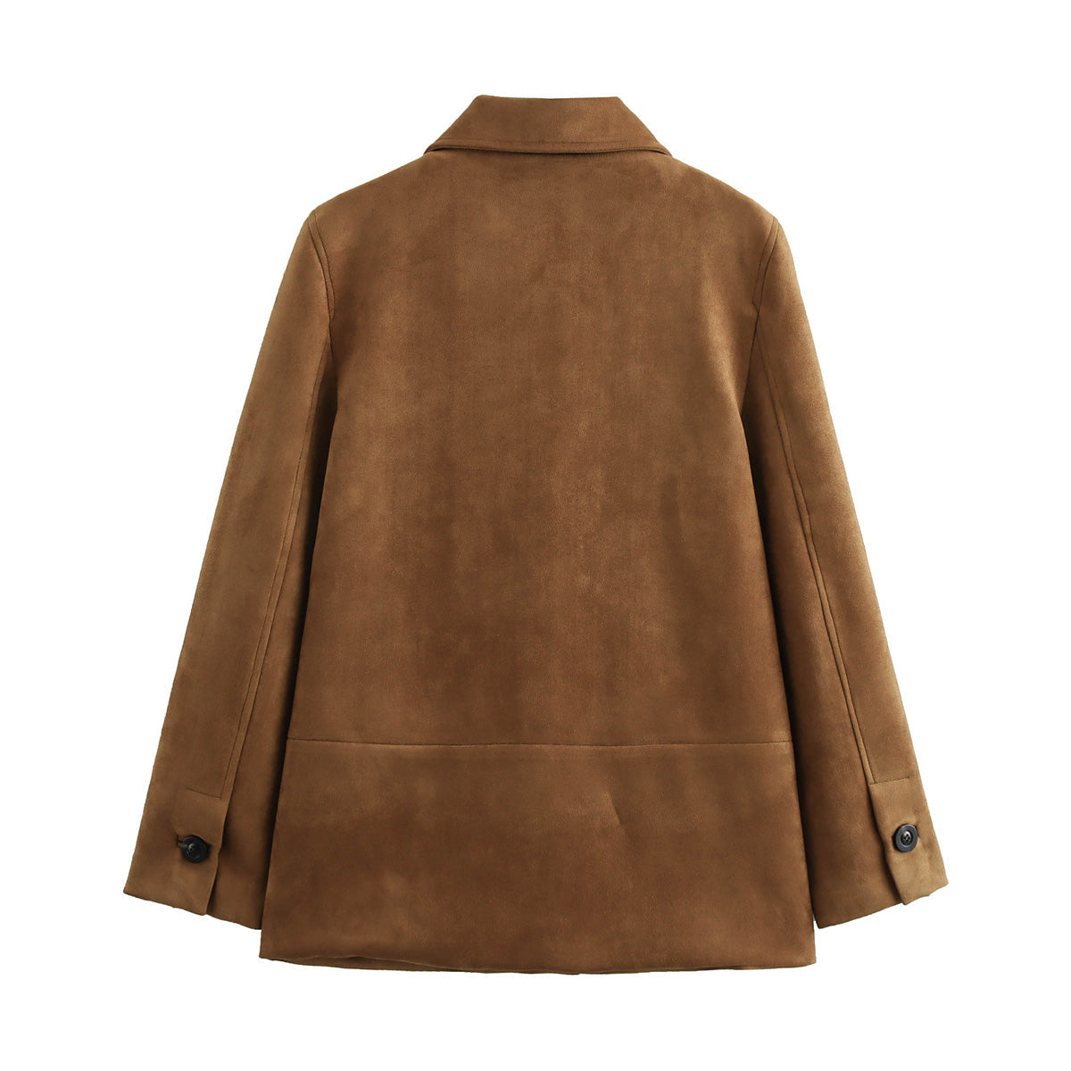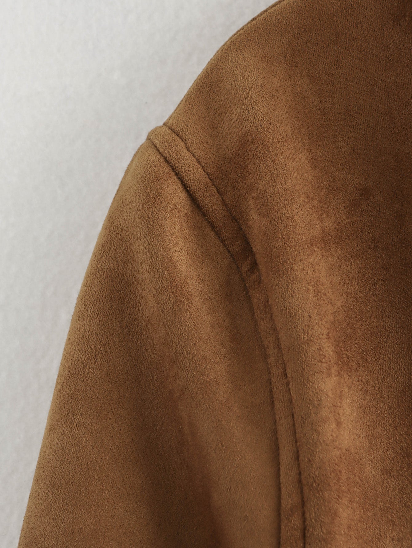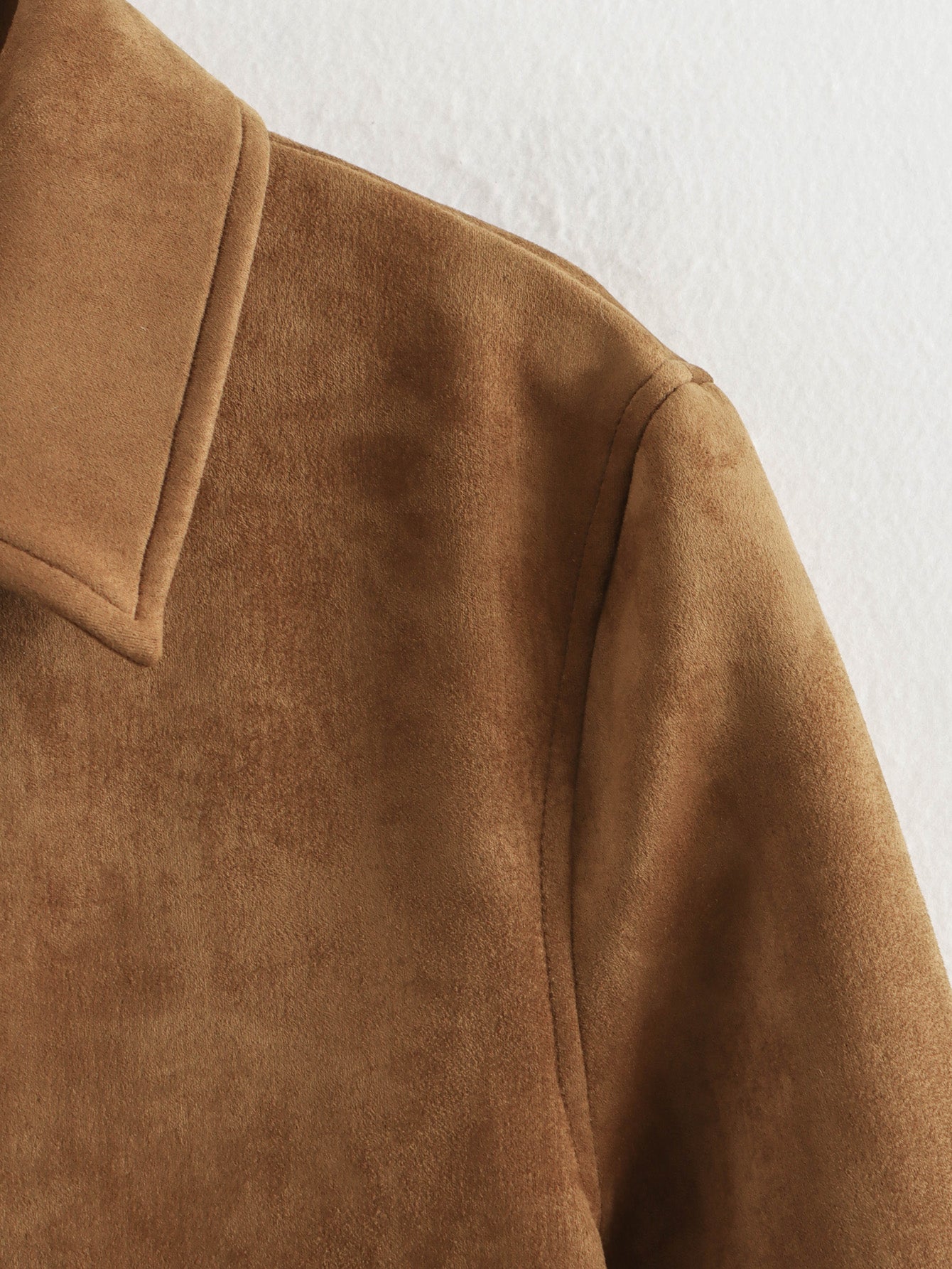 The Emery Suede Pocket Jacket is your go-to layer for effortless cool. Made from soft faux suede. it features oversized patch pockets and a clean button-up front that nails minimal-chic vibes. Perfect for layering over anything from flowy dresses to laid-back denim.