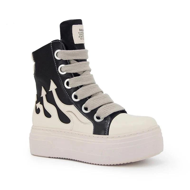 "Elevate your style with our Flame Chunky Sneaker Shoes. Vintage-inspired design meets gothic flair. crafted with PU upper and low heel."