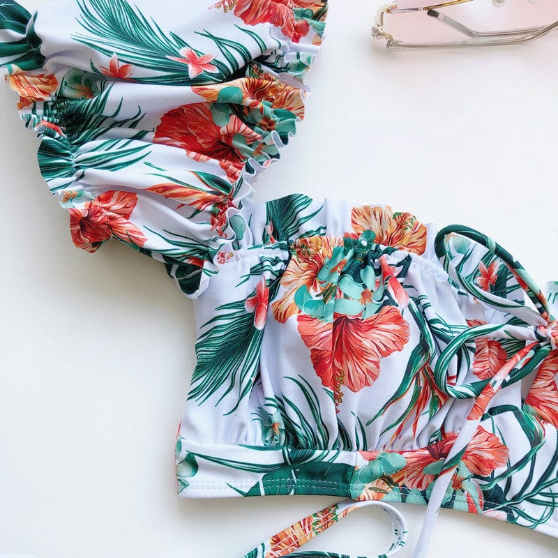 Are you ready for the summer? Sizzle your sunshine days away in our stylish Florence Bikini Set! With its tie-on-the-front design and bohemian-inspired ruffles. you'll look absolutely gorgeous while lounging in the pool. Feel as breezy and light as a daisy �tie. tuck. and rock!