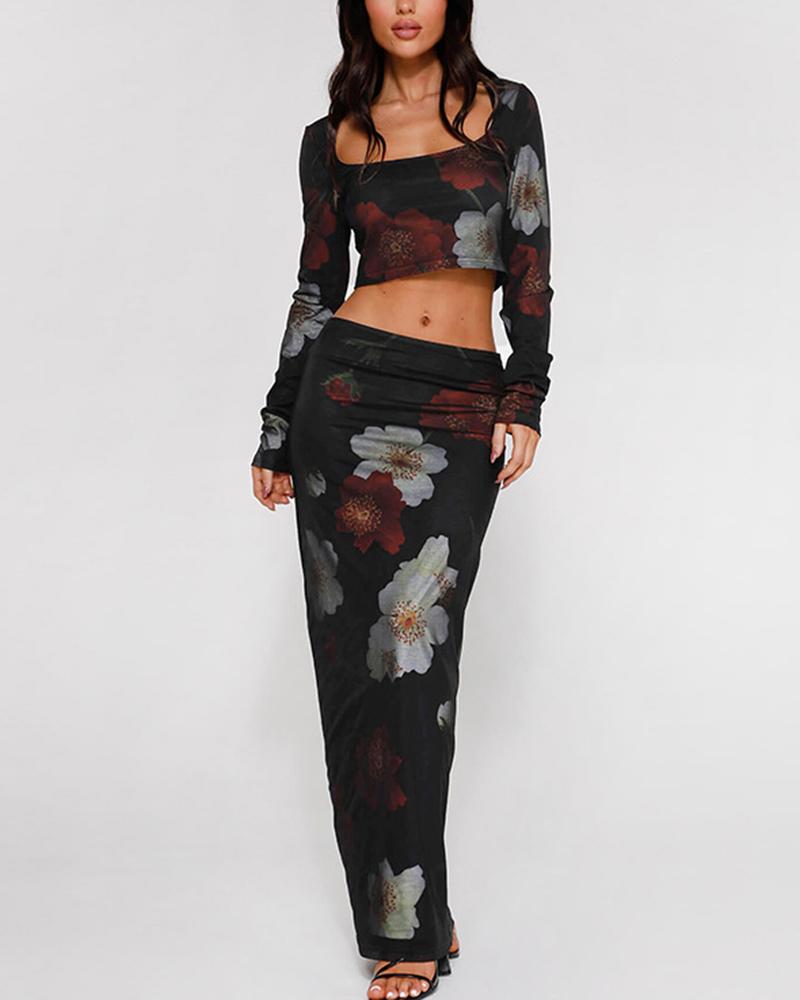 Details: Floral print coord set. coming with long-sleeve top and maxi skirt