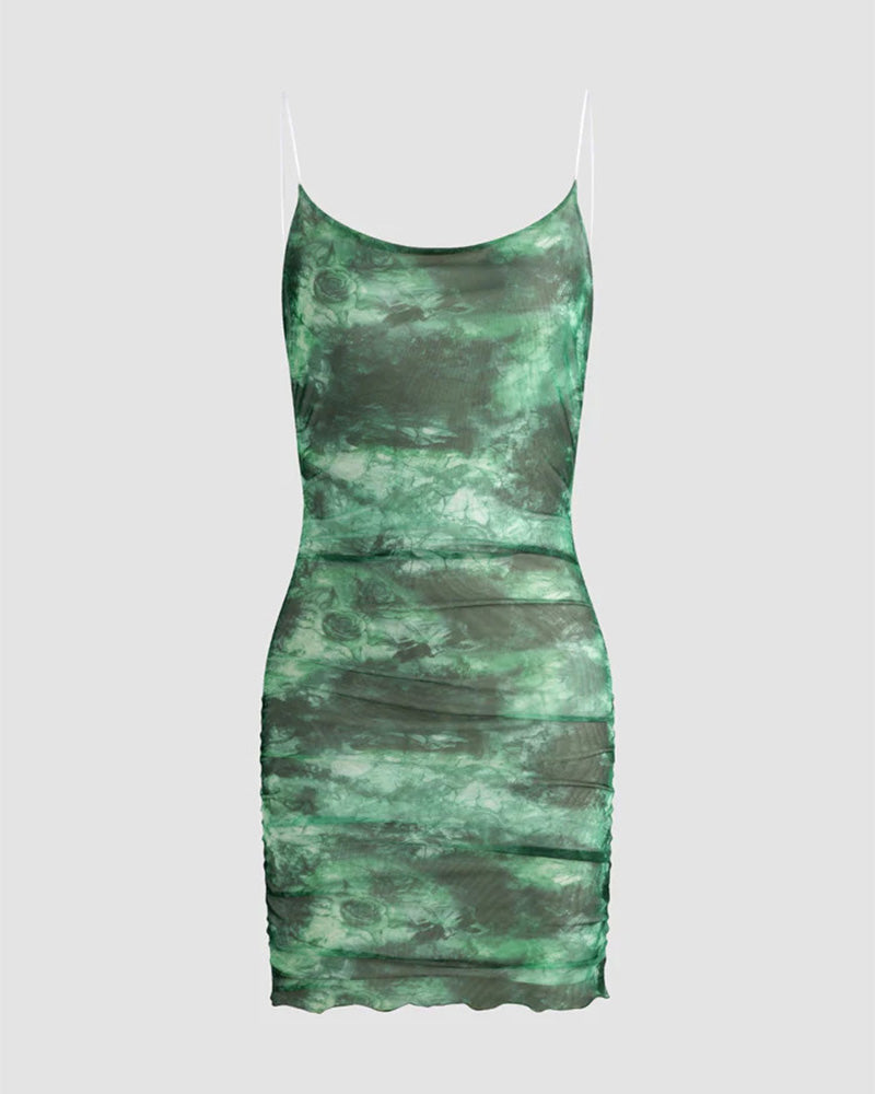 Details: Watermarbled print withshoulder straps design
