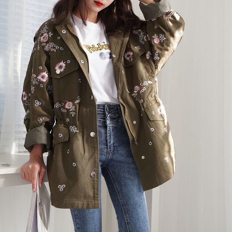 Gardenia Embroidery Coat is a gorgeous coat perfect for spring and summer. Gardenia Embroidery Coat follows your body's shape with ease and is designed to layer with a fitted top or light sweater. Made for those days when it could rain but you still want to look cute and put together. Style with anything. this coat turns head but keeps it simple.