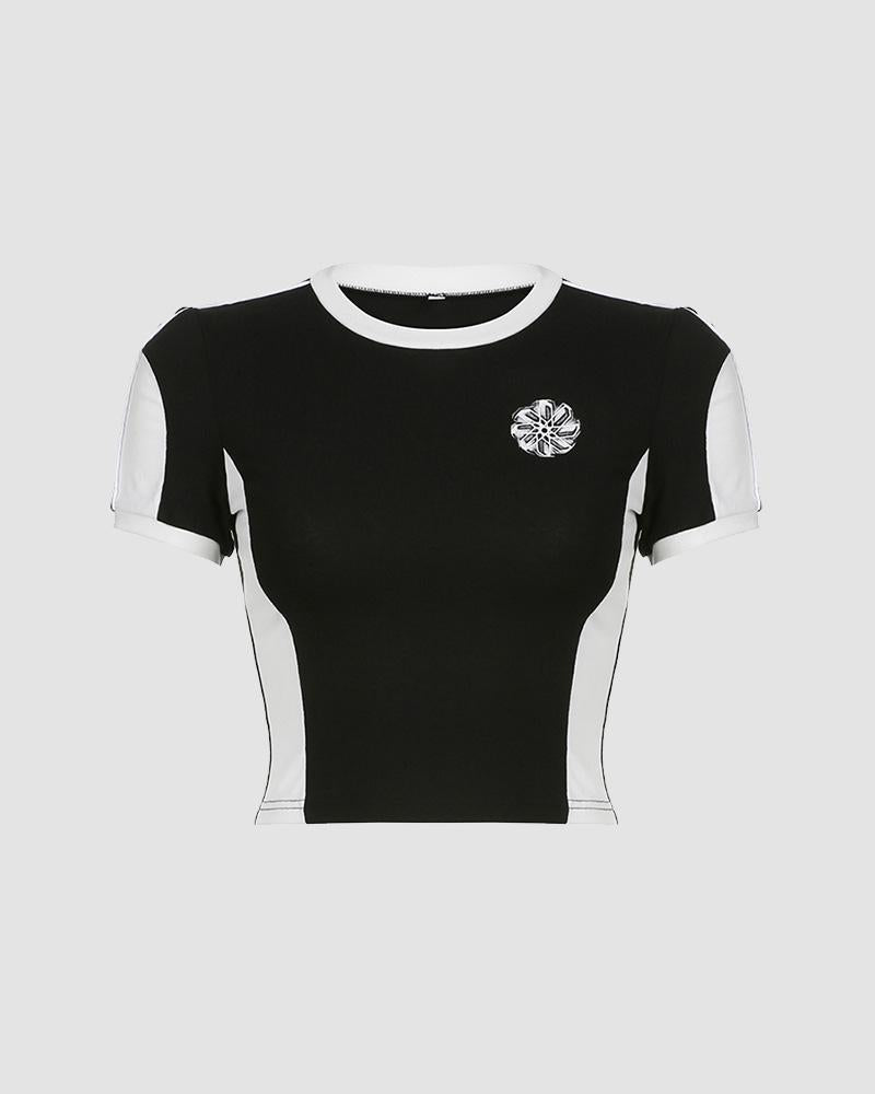Details: Matching color short-sleeve T-shirt with front graphical design