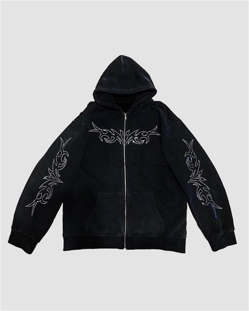 Details: Long-sleeve hoodie with rhinestone gothic print
