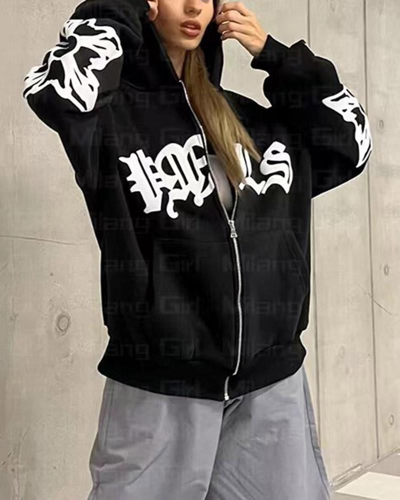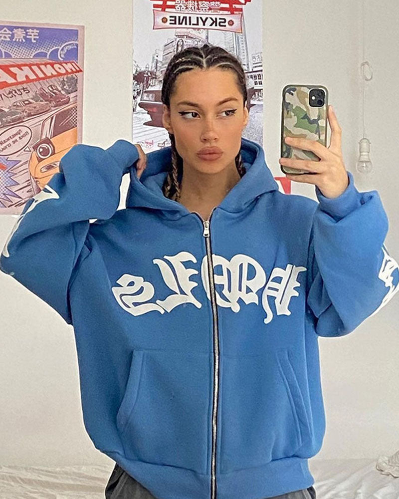 Details: Zip hoodie top with letter design