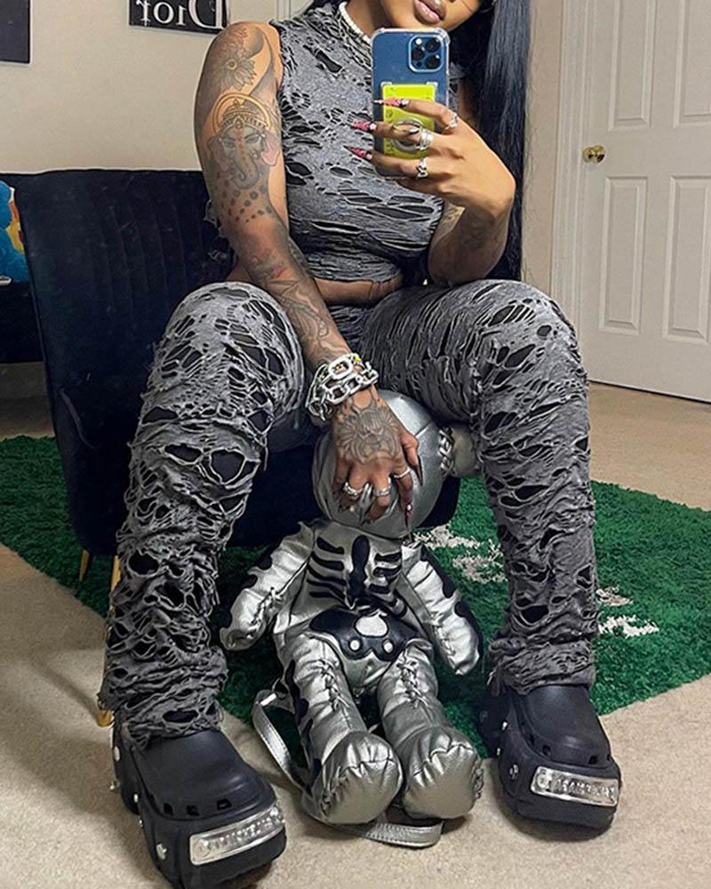 Details: Coord set with rip-off design. coming with hood top and long pants