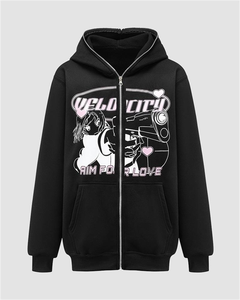 Details: Long-sleeve hoodie with front Japanese manga graphical print