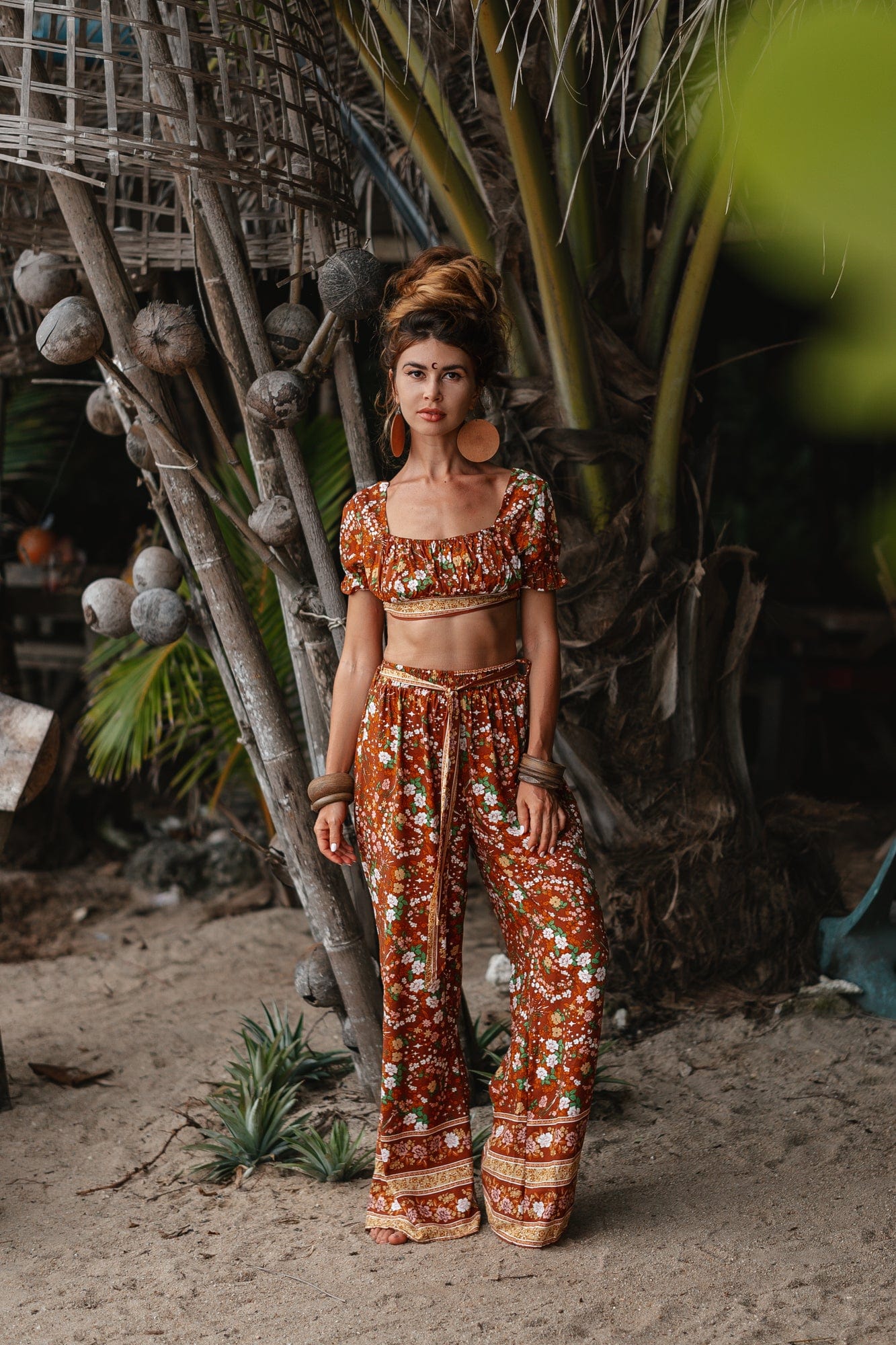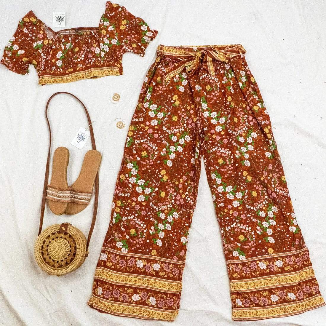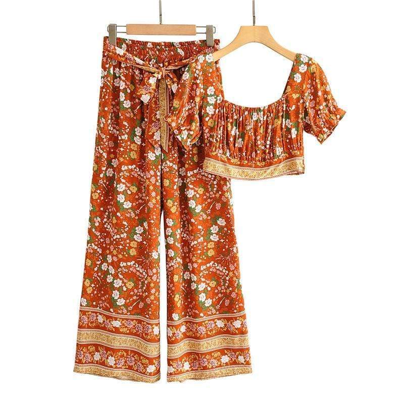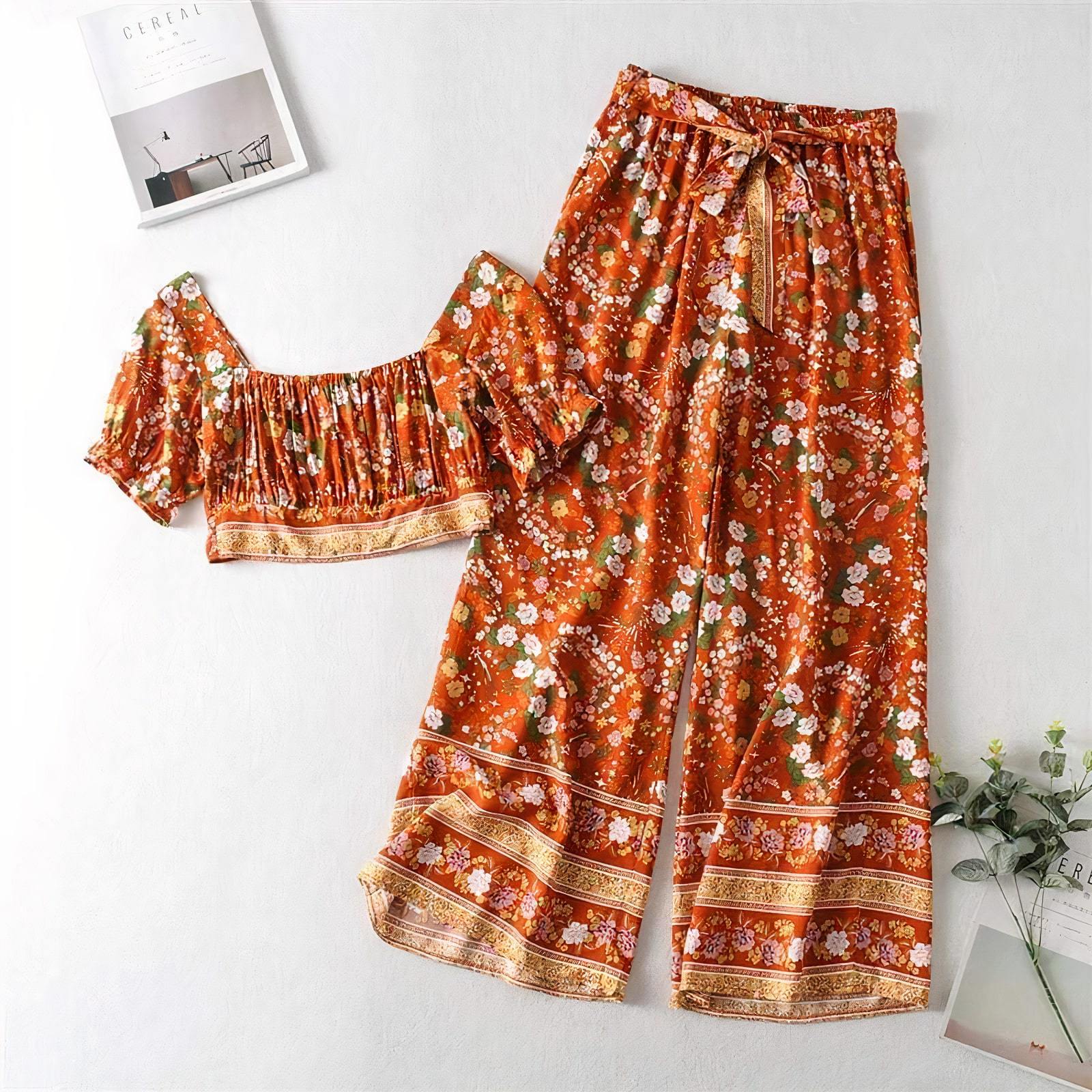 • Twin set Pants & Crop top in floral orange print