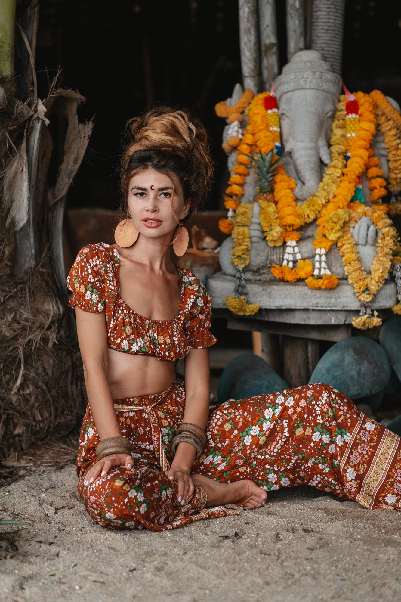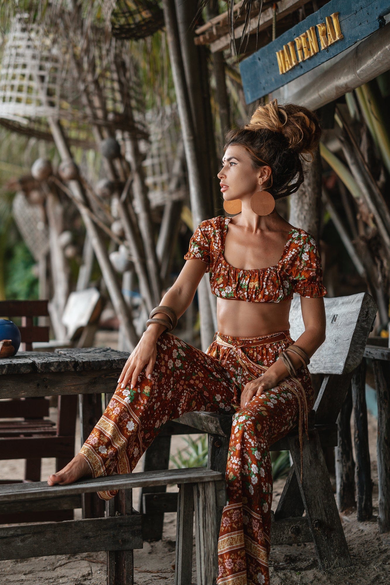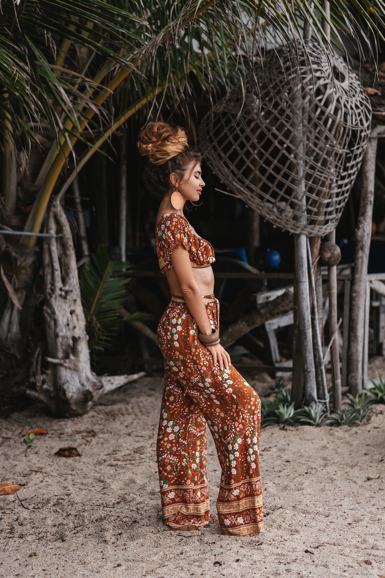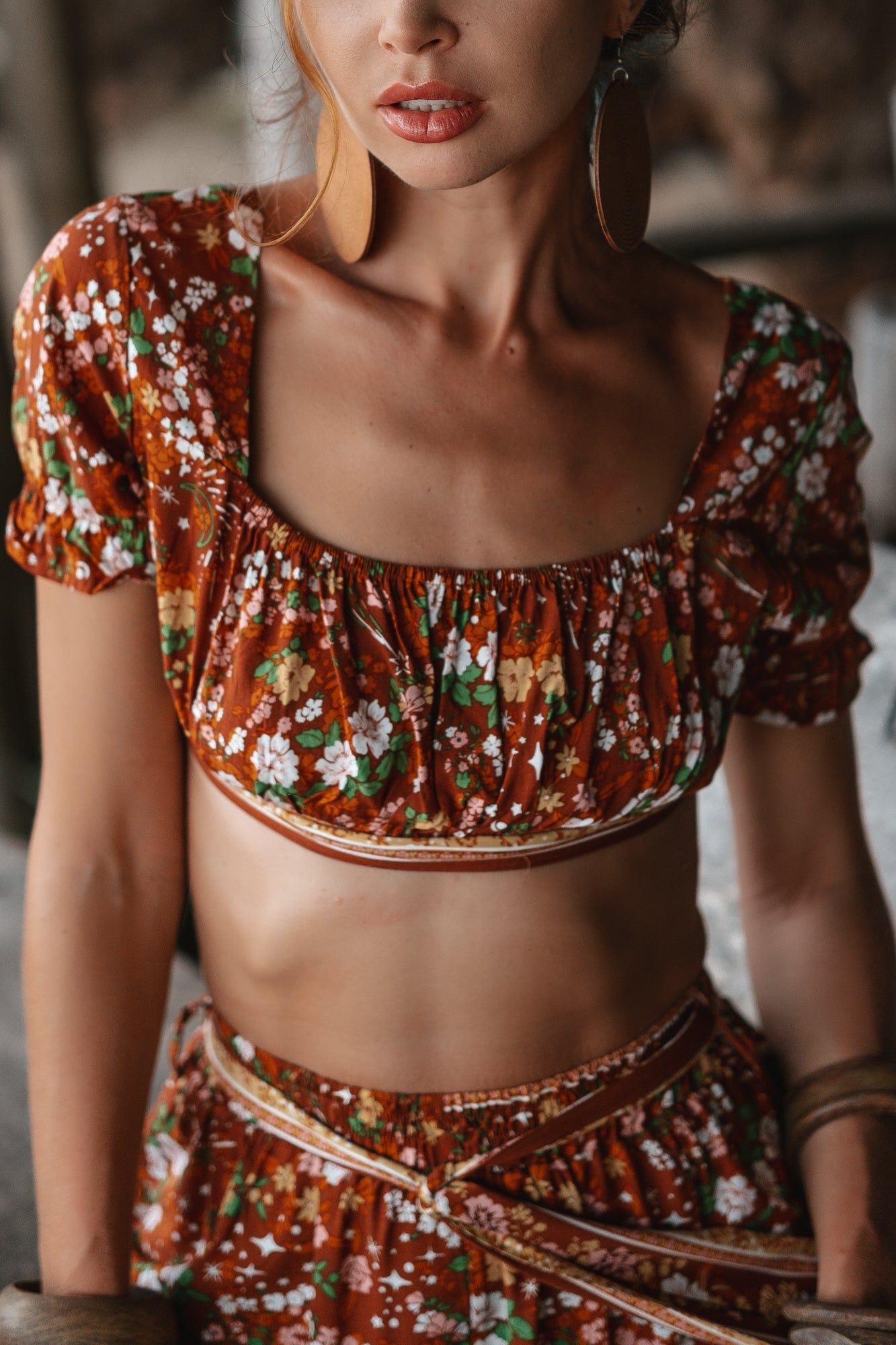 • Twin set Pants & Crop top in floral orange print