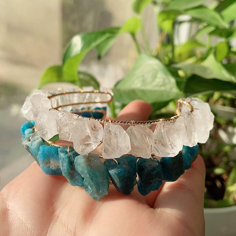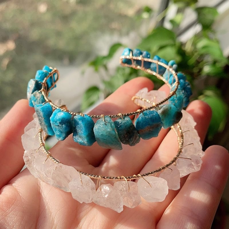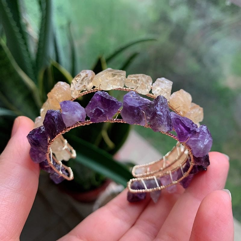 The Healing Crystals Cuff Bangle is a piece of jewelry that looks stunning and can be worn for your own personal healing purposes. This cuff is a meditative and healing piece for your everyday missions.