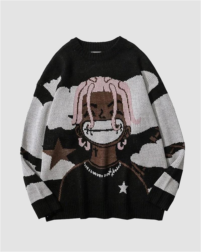 Details: Long-sleeve sweater with front human face graphical design