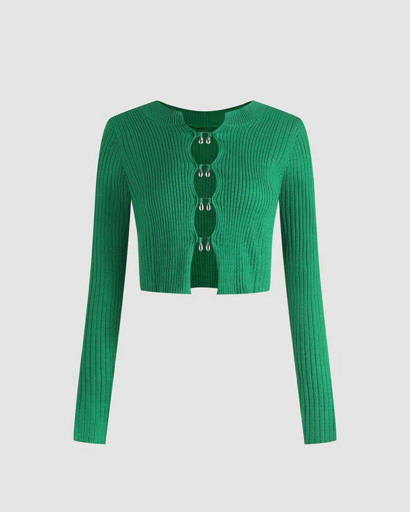 Details: Ribbed long-sleeve crop top with front cut-out designs