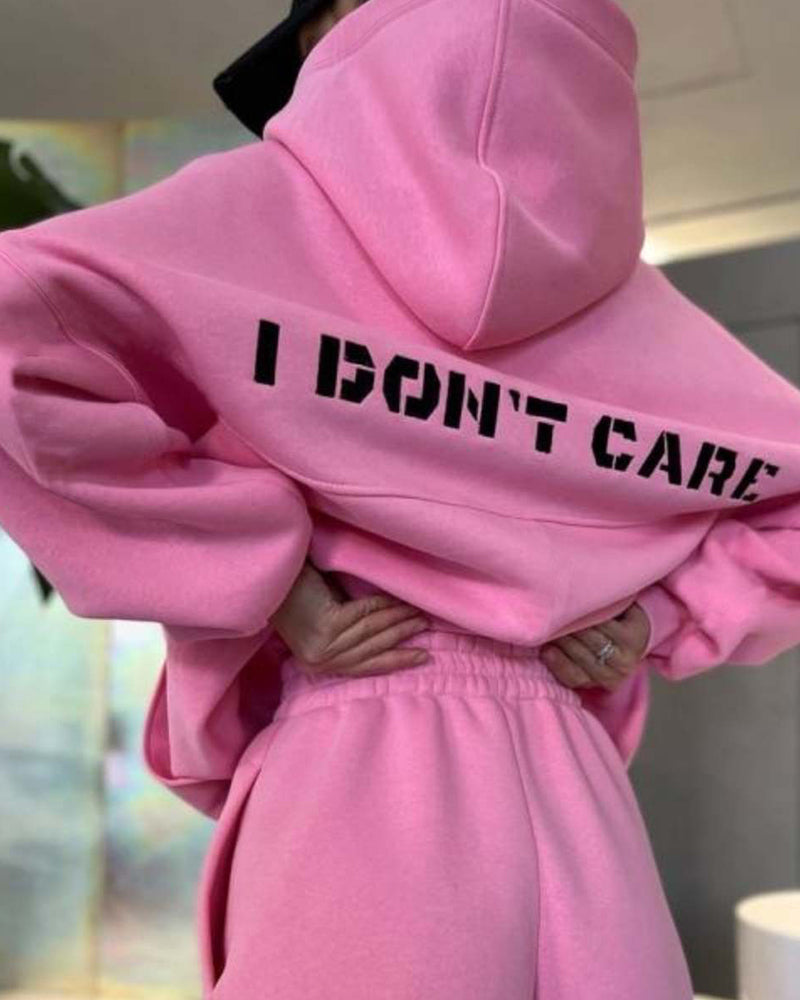 Details: Coord set with I Don't Care slogan print. with hoodie top and pants