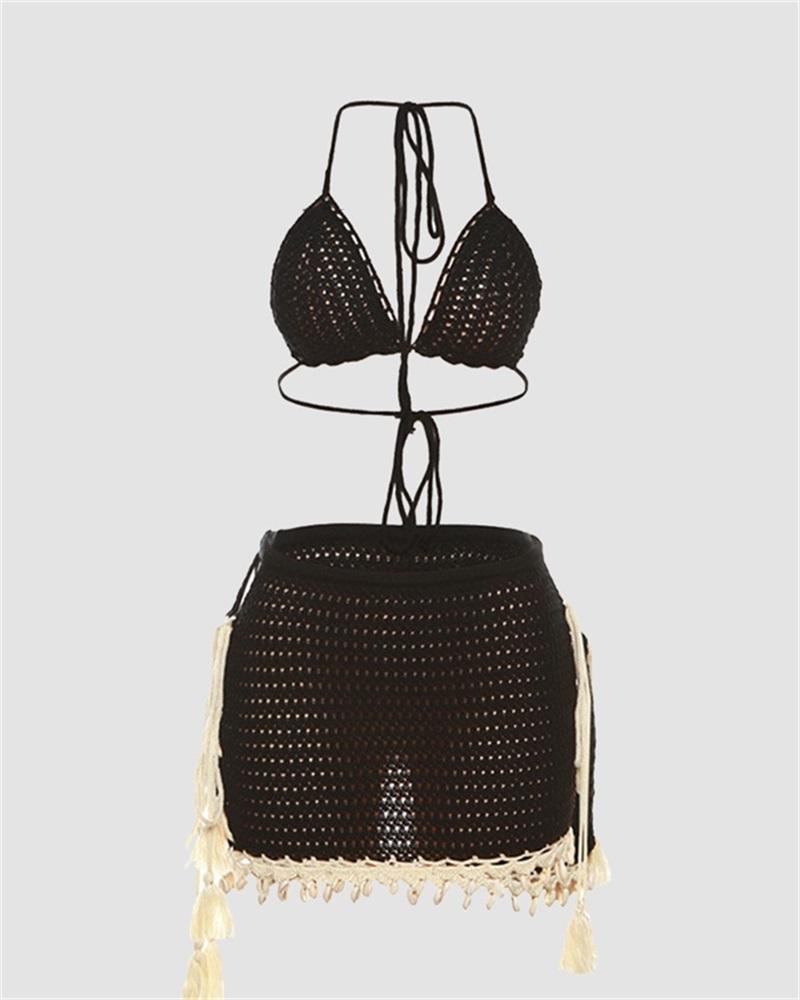 Details: Crochet coord set. coming with halter bralet and mini skirt