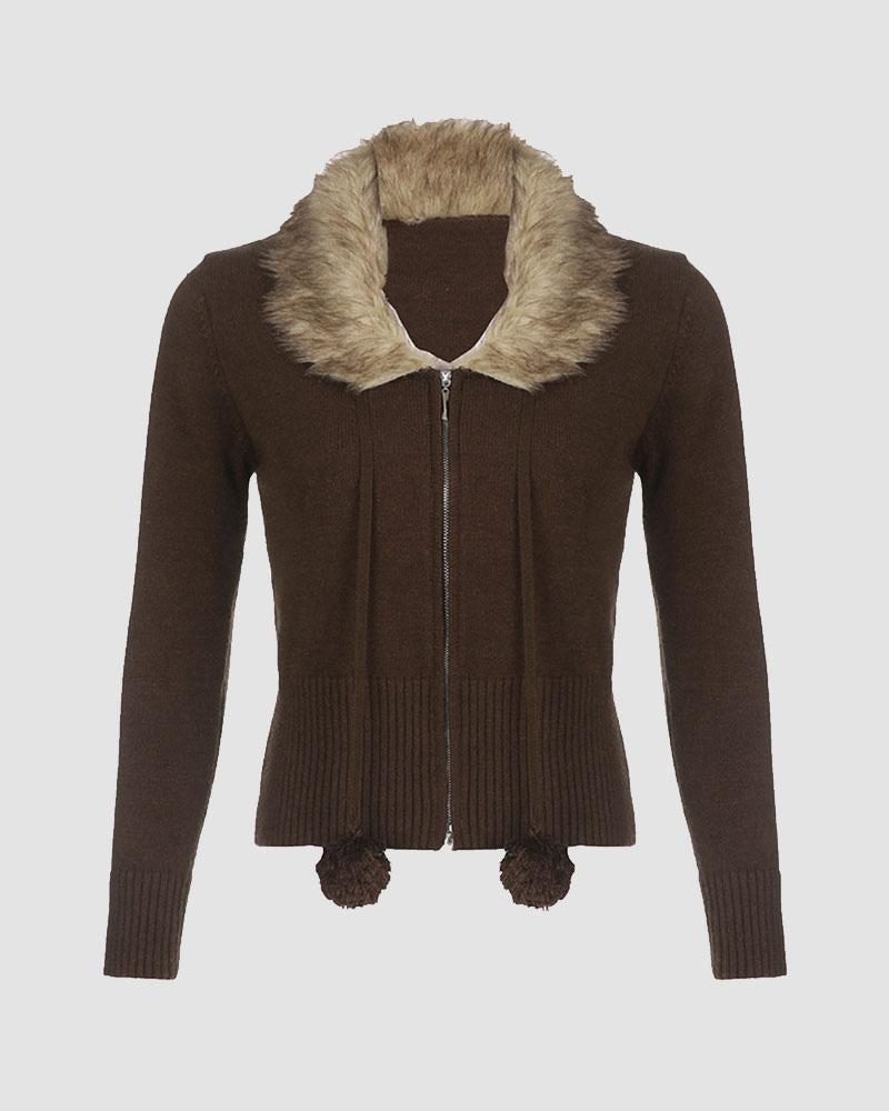 Details: Long-sleeve cardigan with fuzz design