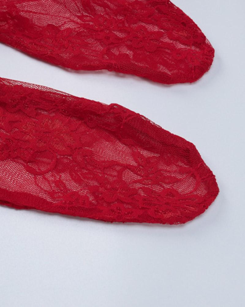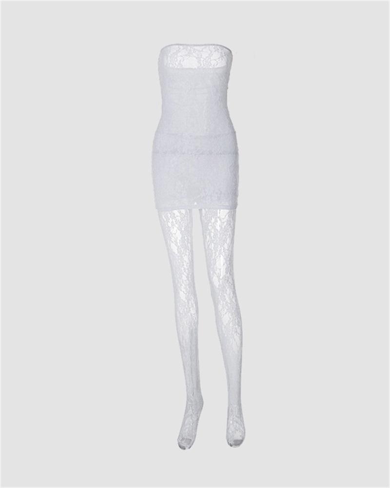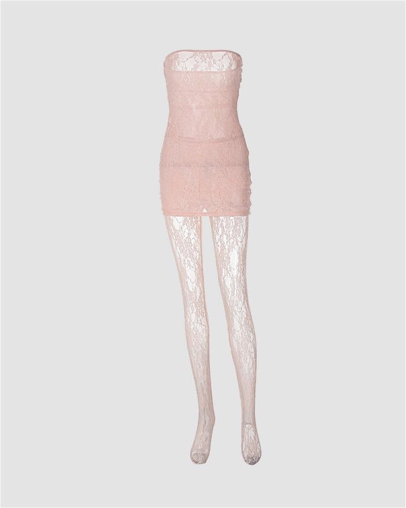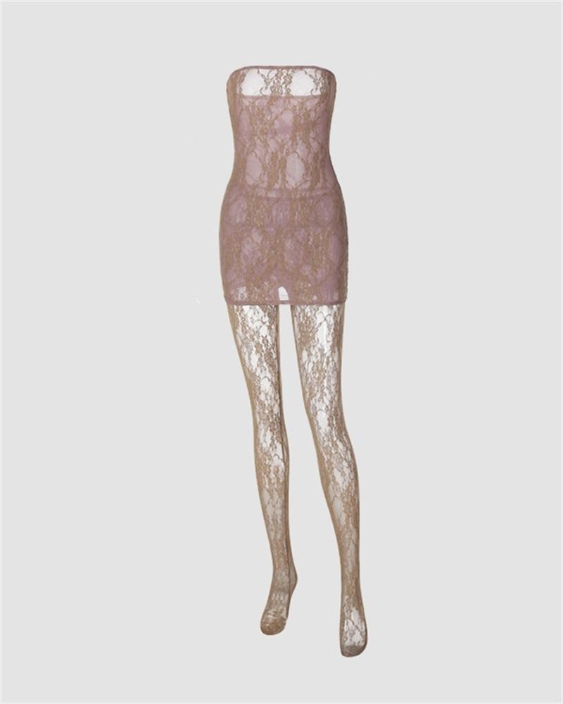 Details: Mesh tube dress with stockings design
