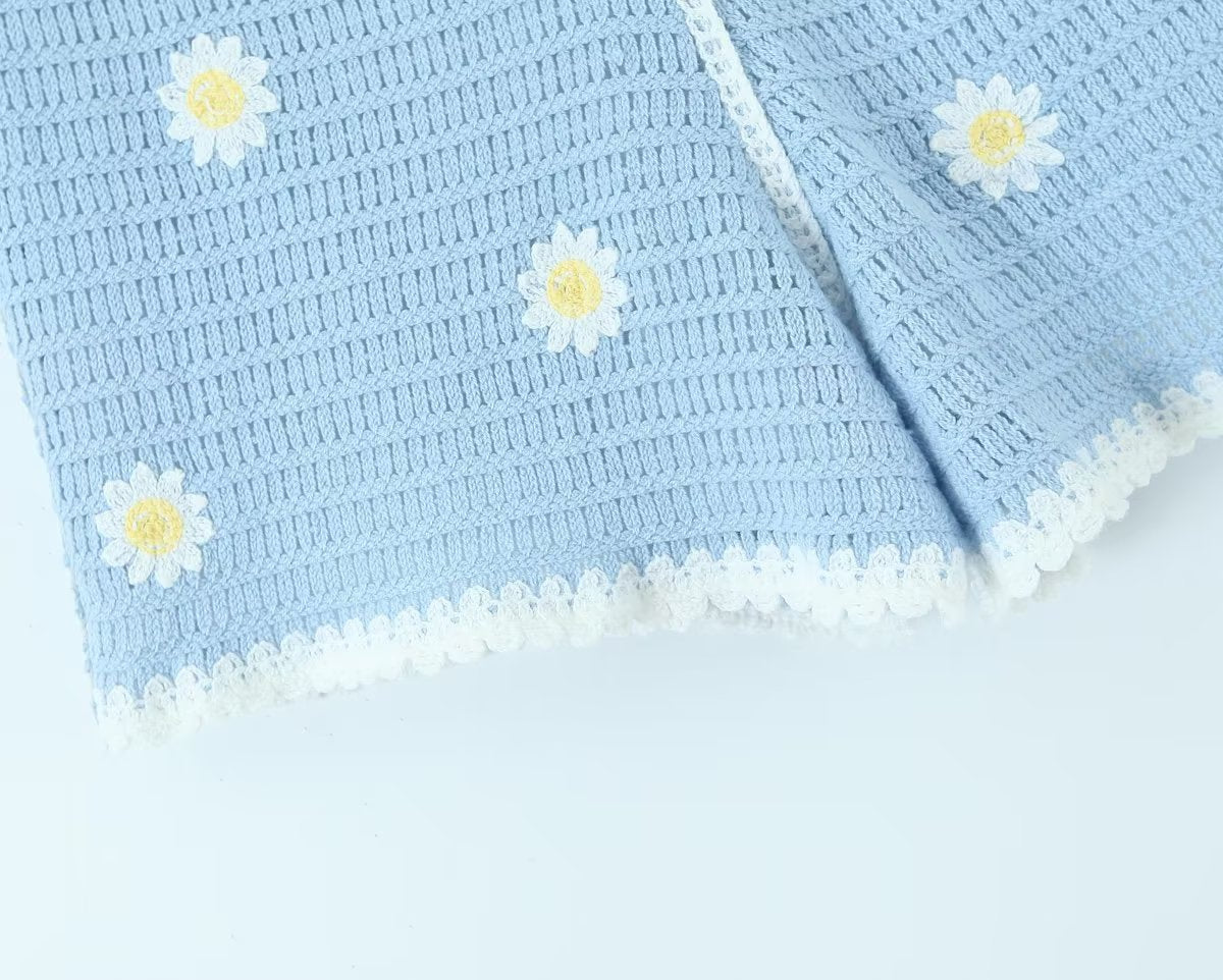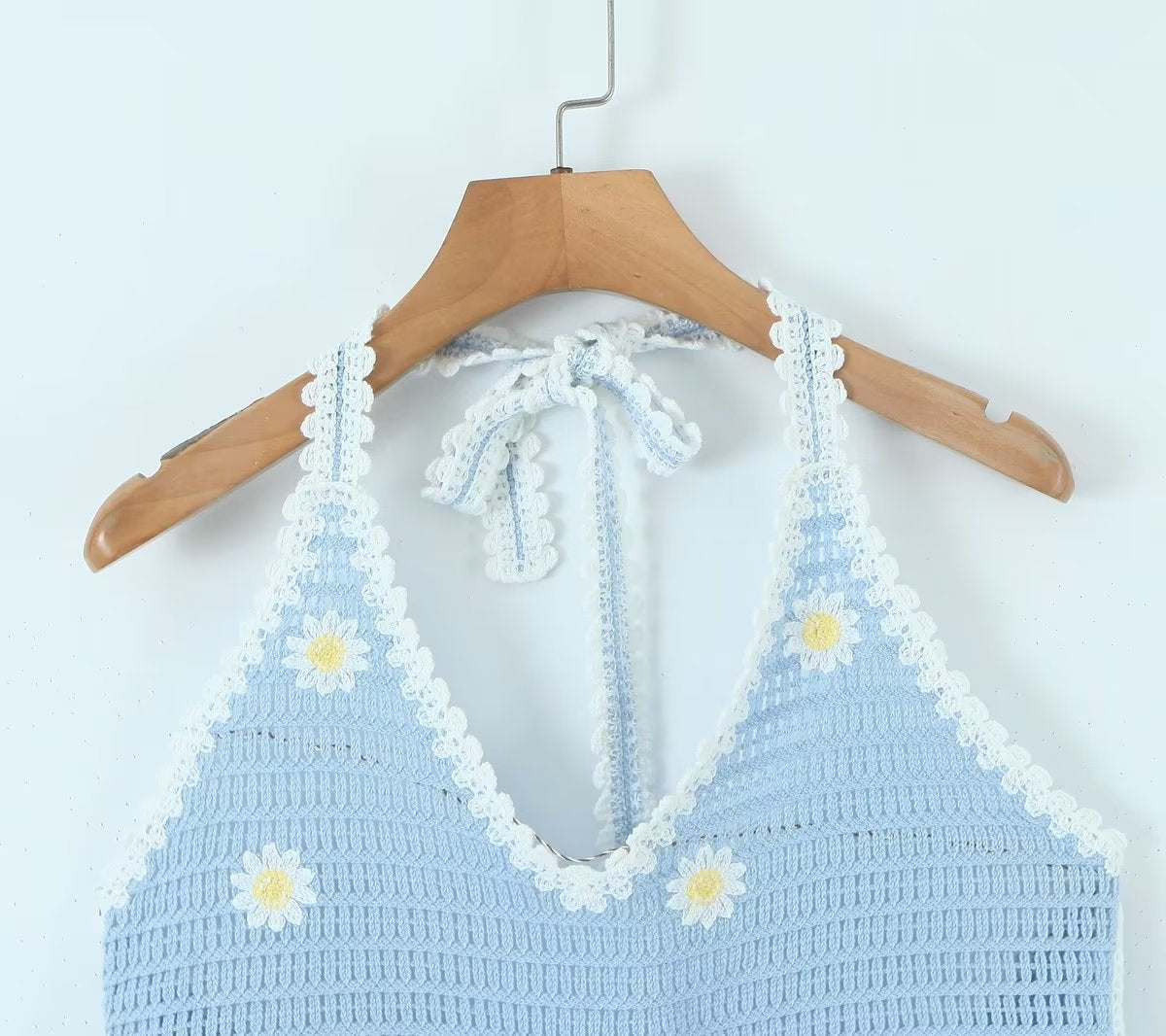 The Daisies Crochet Matching Set is basically summer in a top—soft. flirty. and full of sunny vibes. Features hand-knit crochet with sweet daisy detailing. scalloped trim. and a flirty tie-back for that just-threw-this-on energy. Pair it with cutoffs and bare feet for your next rooftop hang or beach day escape.