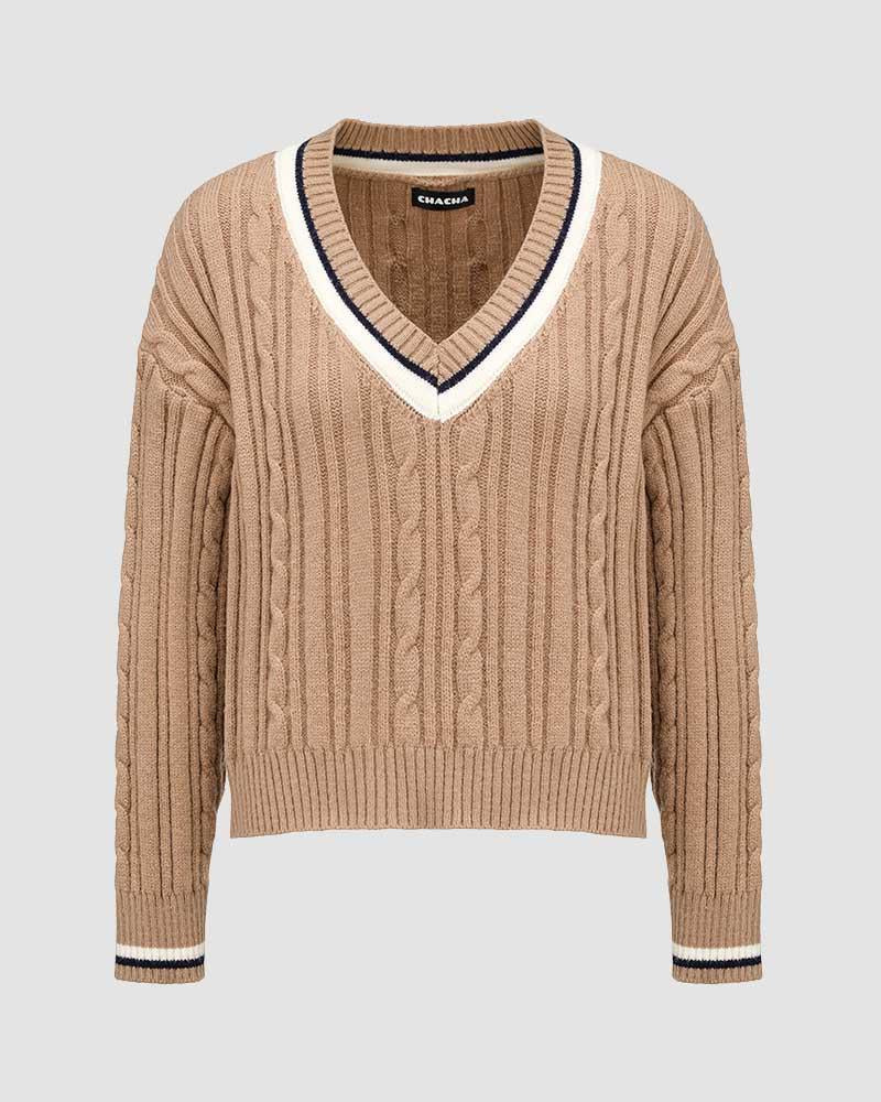Details: Long-sleeve sweater with cable design