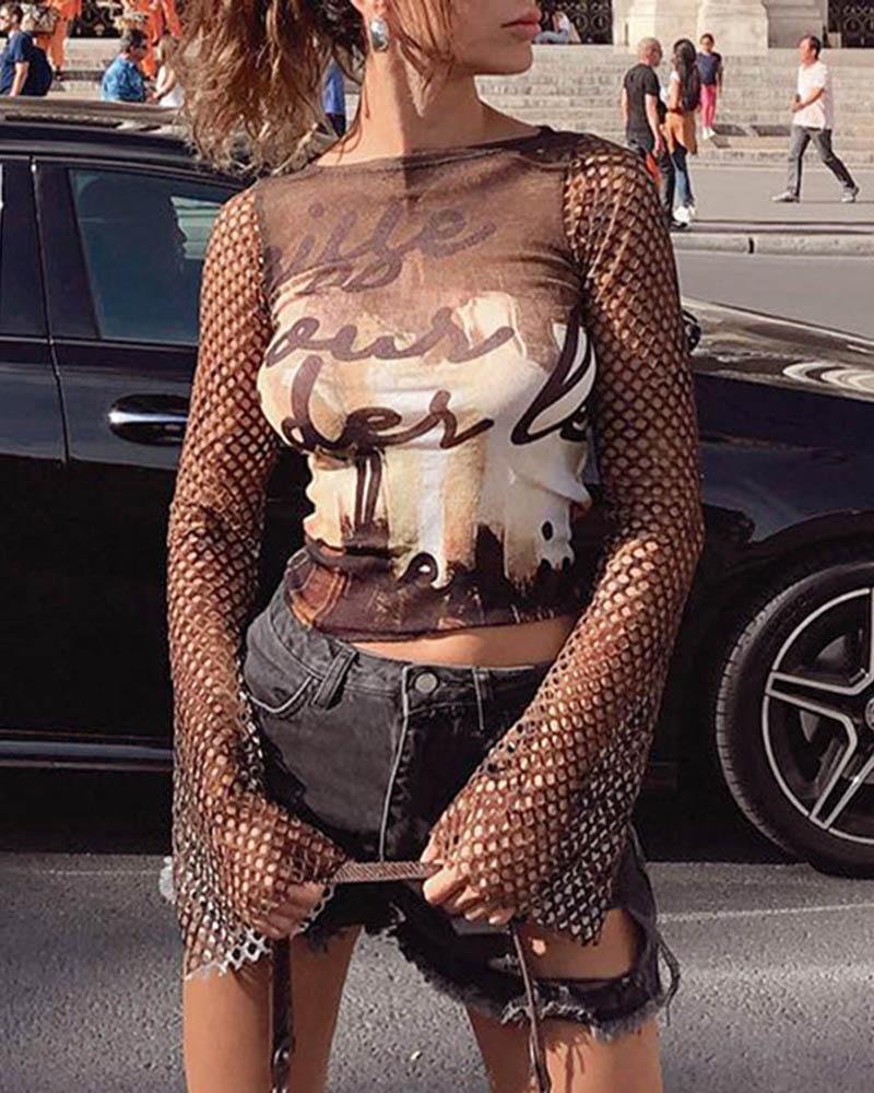 Details: Long-sleeve top with mesh sleeves design
