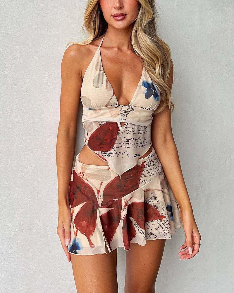 Details: Coord set with butterfly graphical design. coming with halter top and short skirt